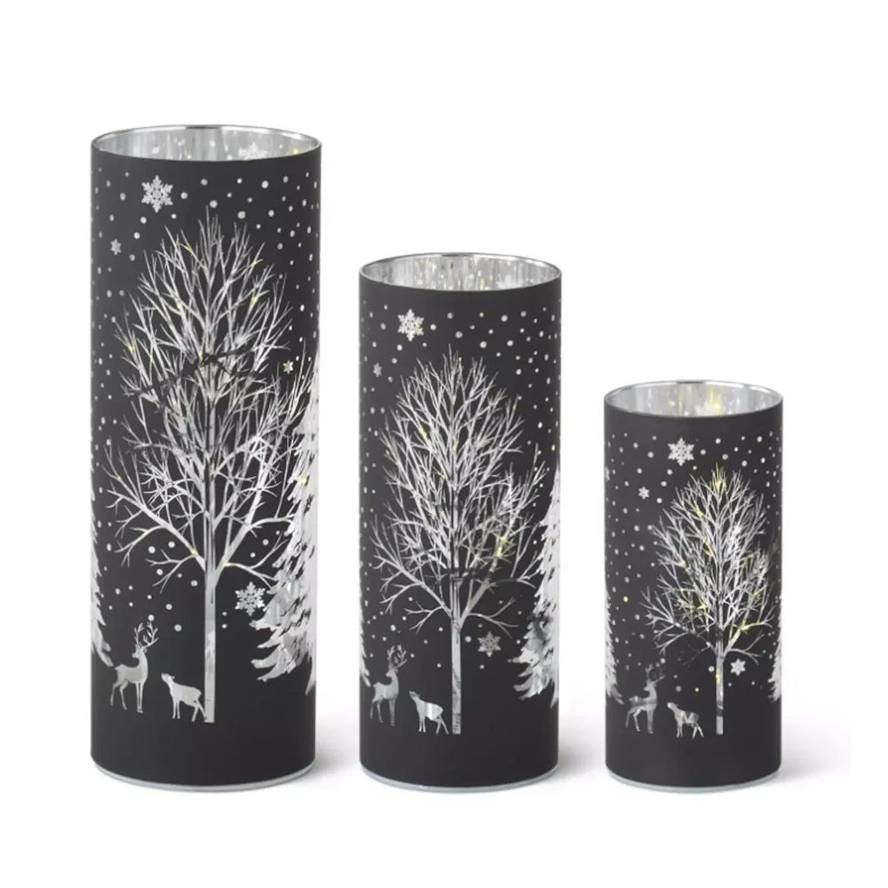 Set of 3 Laser Engraved Winter Scene LED Cylinders