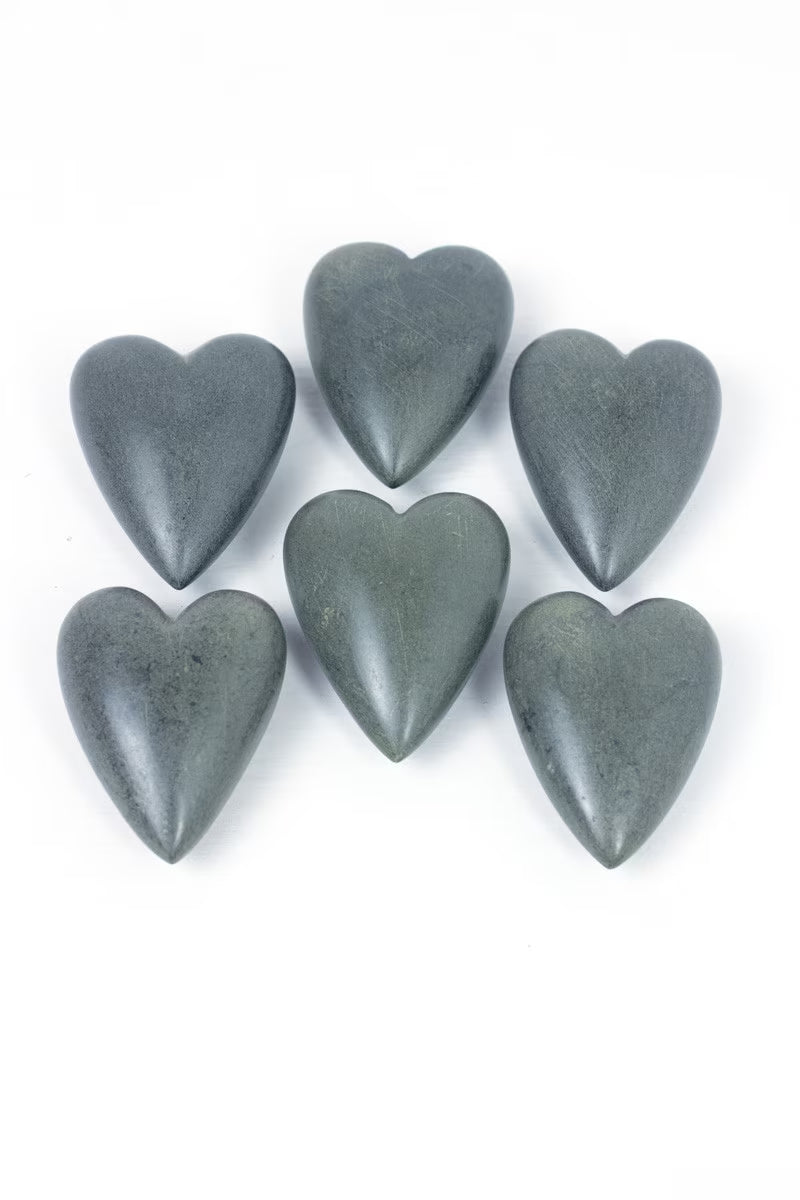 Dark Grey Hand-Carved Stone Hearts