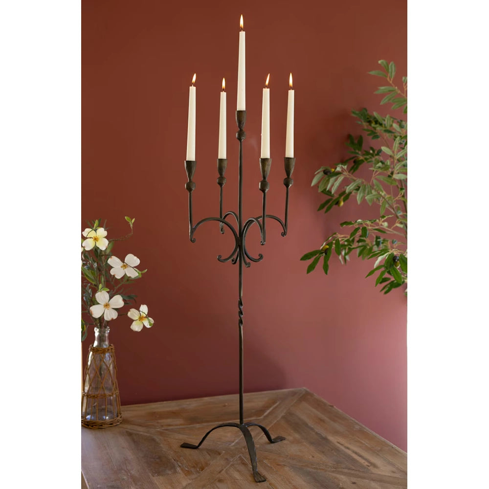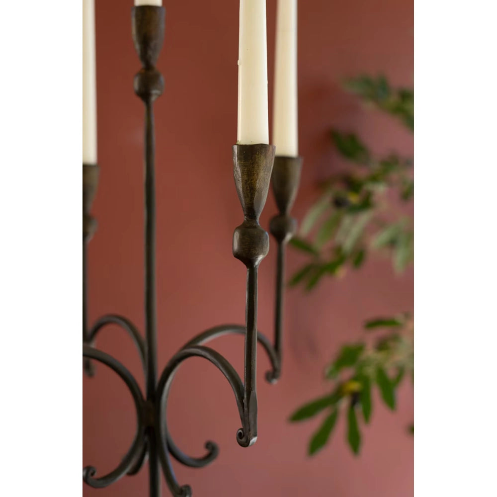 For the hunting cabin or other rustic space try this tall five-taper candelabra, made in India. It towers over tabletop decor. Make a unique centerpiece with a tall pair.