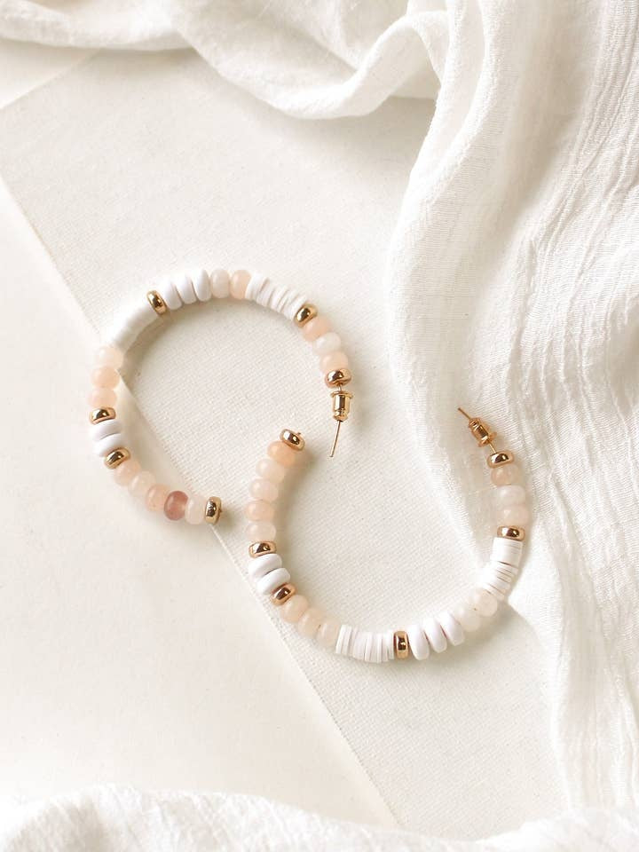 Hoop Earrings | White & Pink Crystal Beads w/ Mixed White Clay