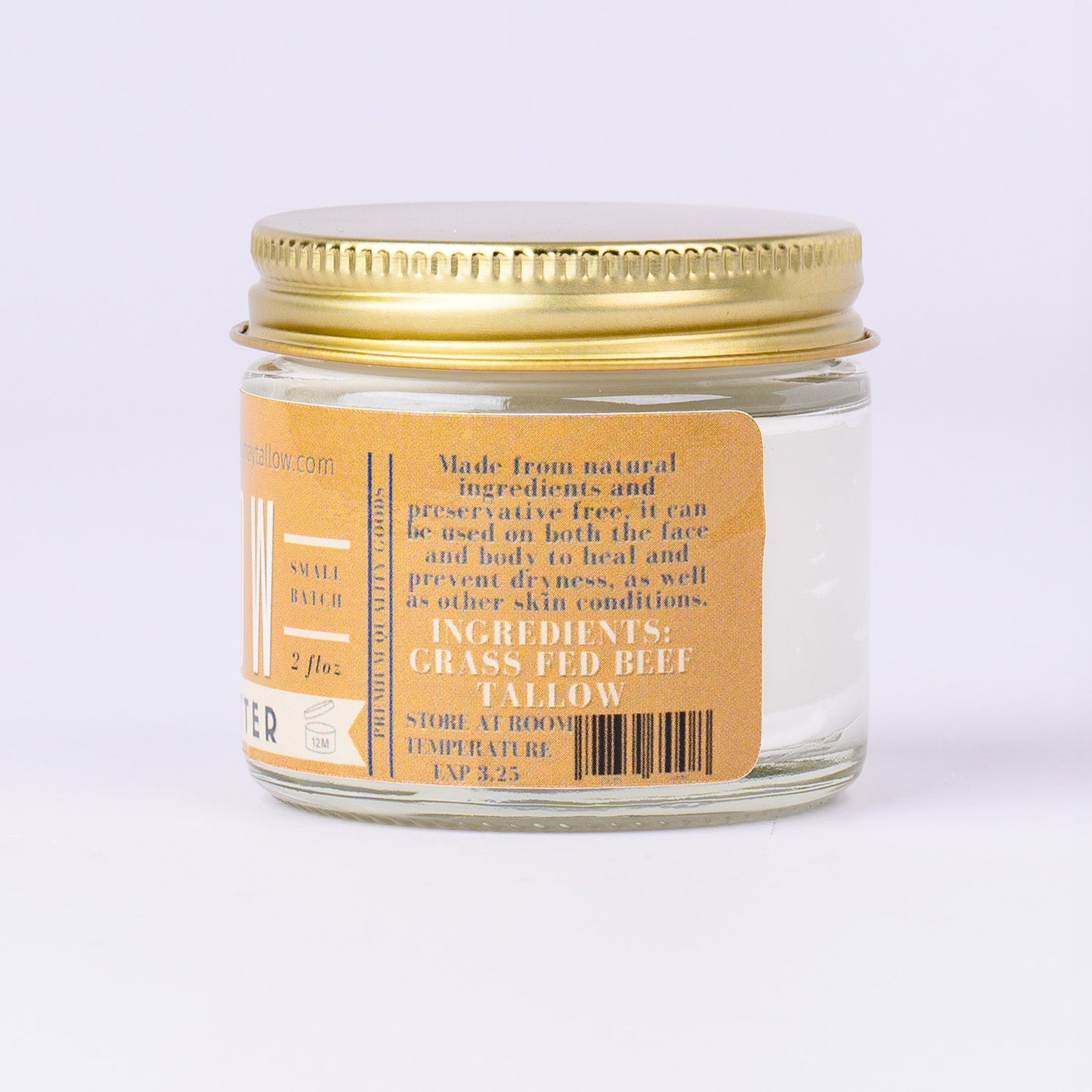 Our ingredients are known for their hydrating, moisturizing properties making them a must-have component in any body butter. Body butter is a thick cream that is deeply moisturizing. It can help you protect your skin from dryness as well as rough or patchy skin. The best way to use body butter is to apply it after your daily shower or bath. Ingredients: 100% Grass Fed Beef Tallow, Extra Virgin Olive oil, Jojoba Oil, Vitamin E, Beeswax