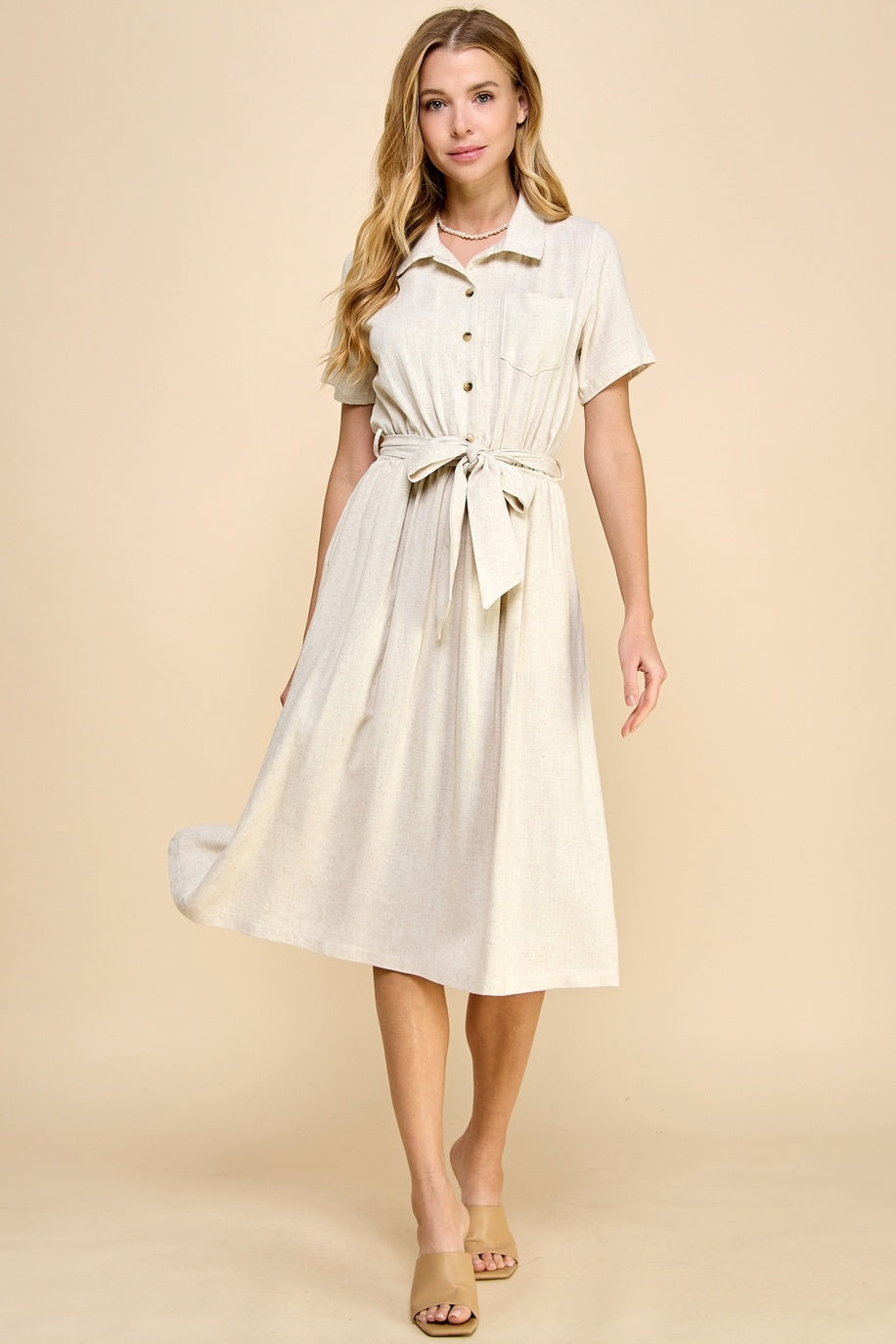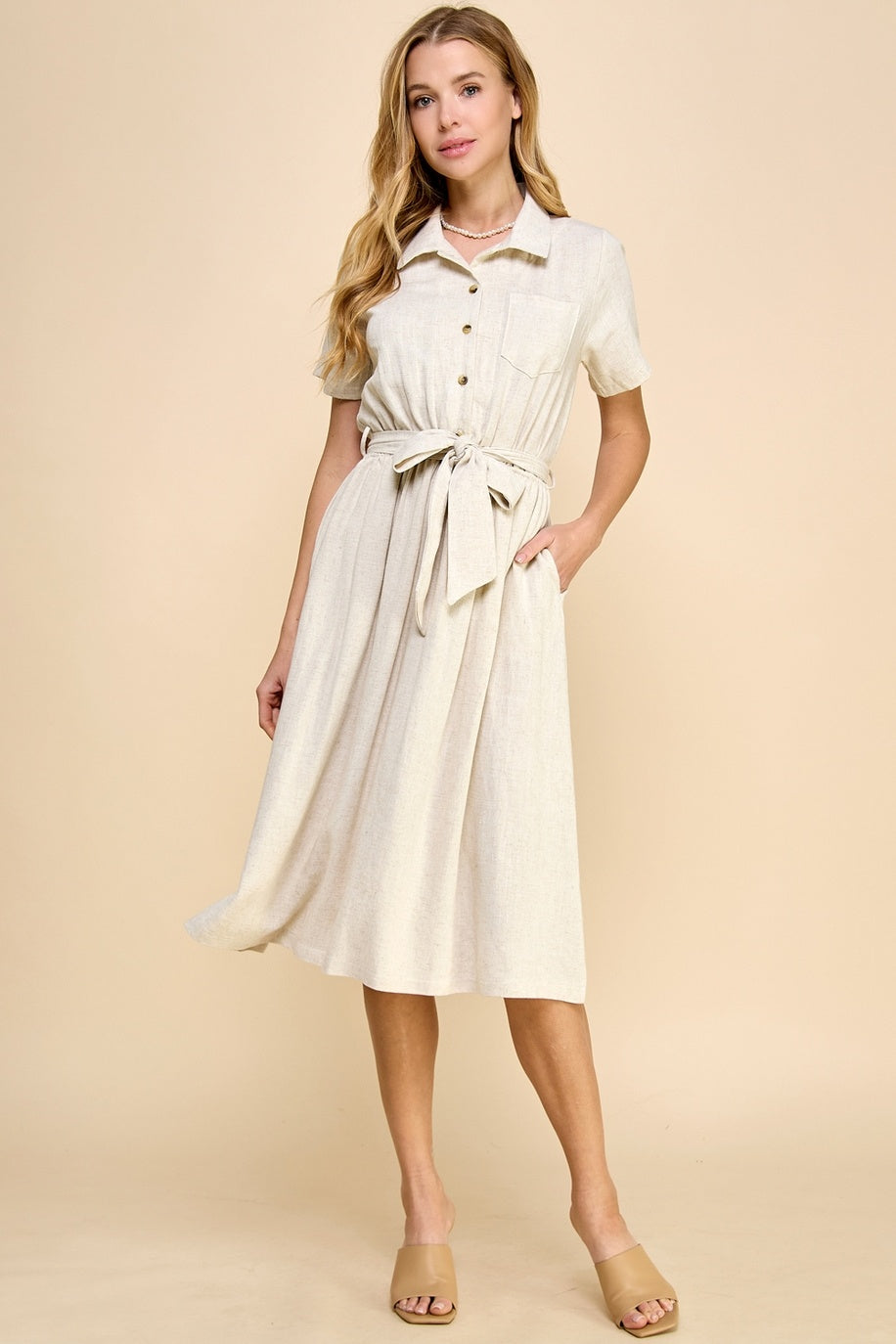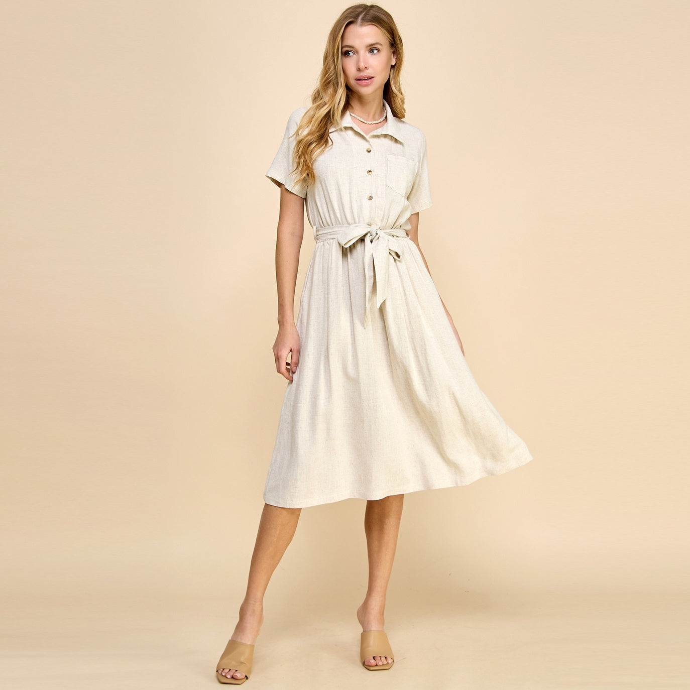 Elevate your wardrobe with our Linen Dress featuring Pockets and Waist Tie Detail. This stylish and versatile dress combines the timeless charm of linen with modern design elements.