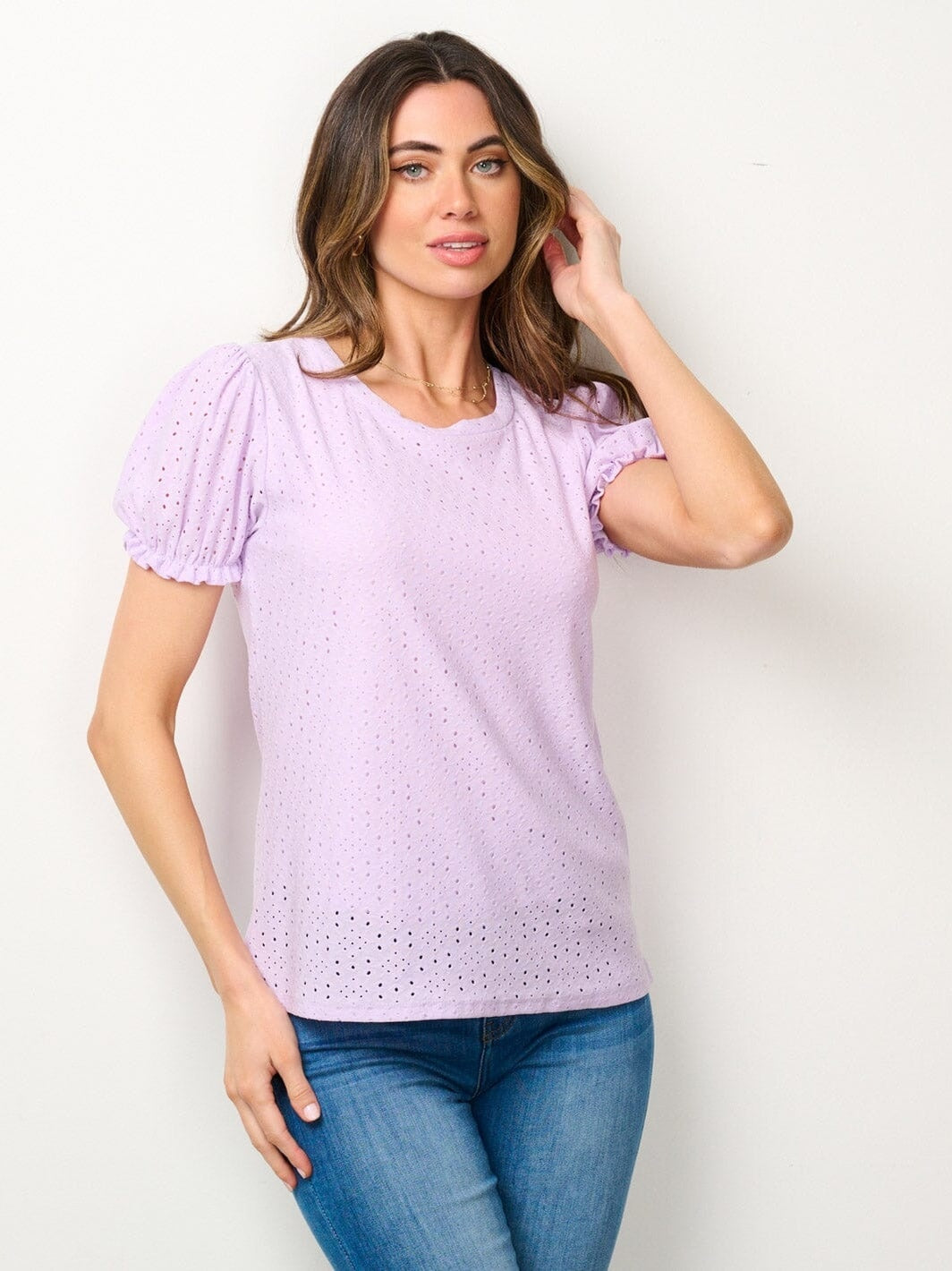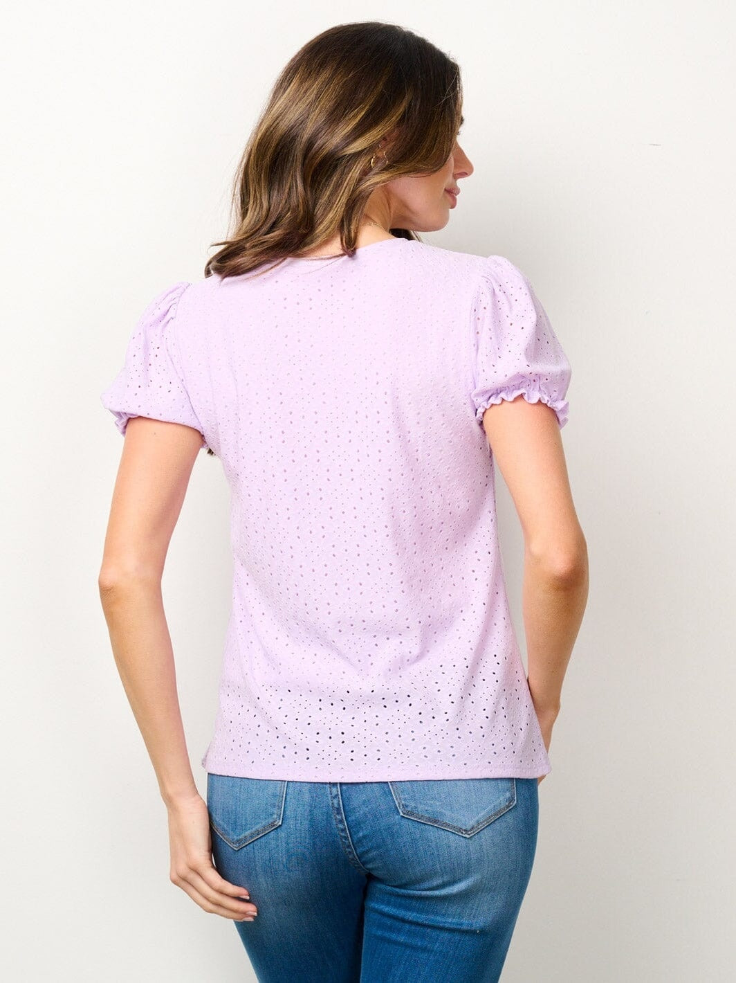 Short Sleeve Eyelet Detailed Blouse Top Small
