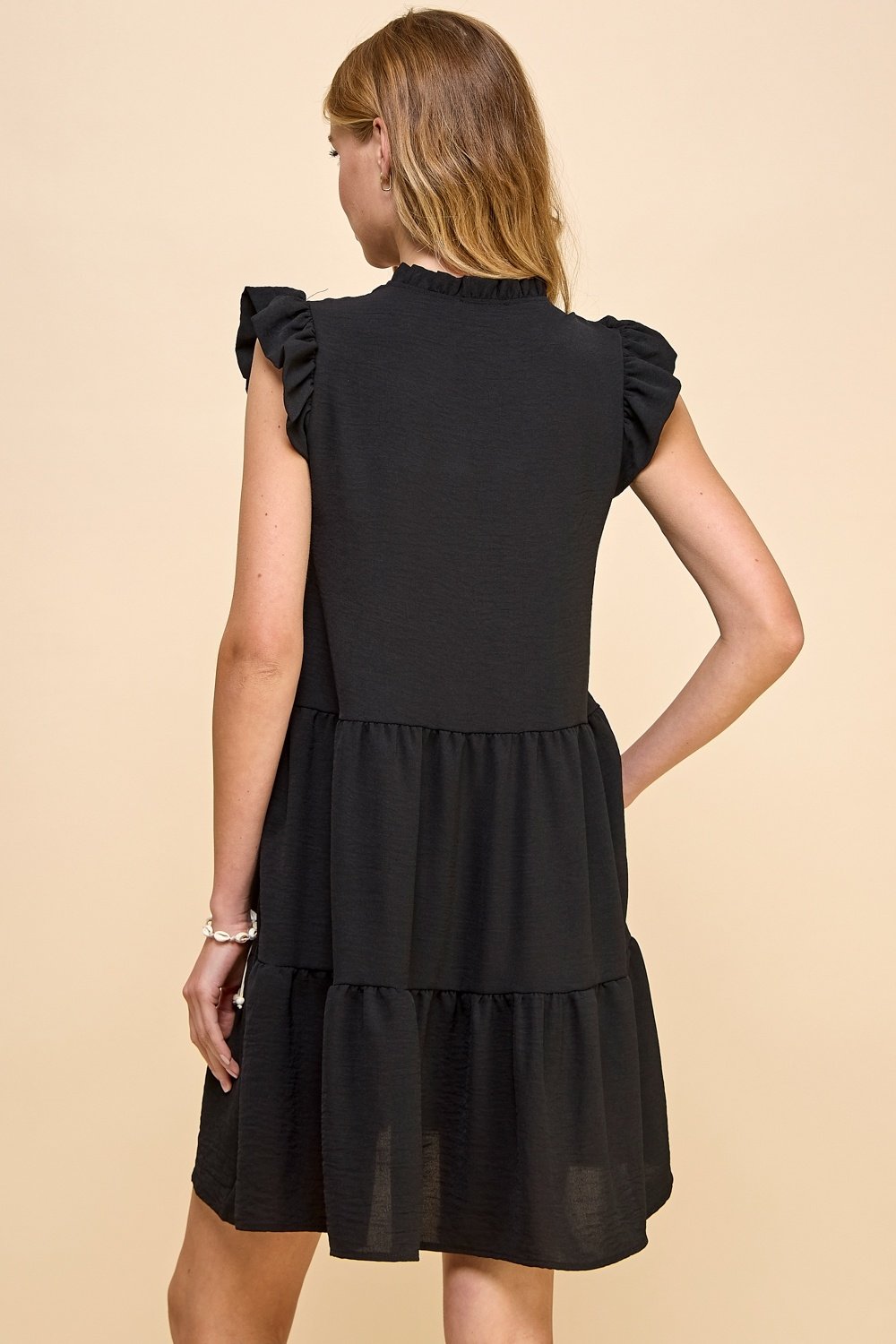 V necked Ruffled Sleeves Floral Solid Dress. Effortlessly chic, this V-neck dress combines feminine charm with a modern flair. Featuring ruffled sleeves and a delightful floral solid pattern, it's a versatile wardrobe staple for any occasion.