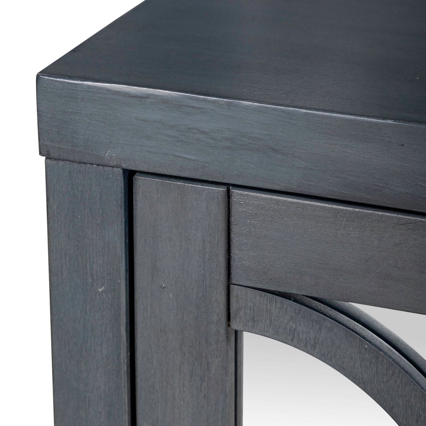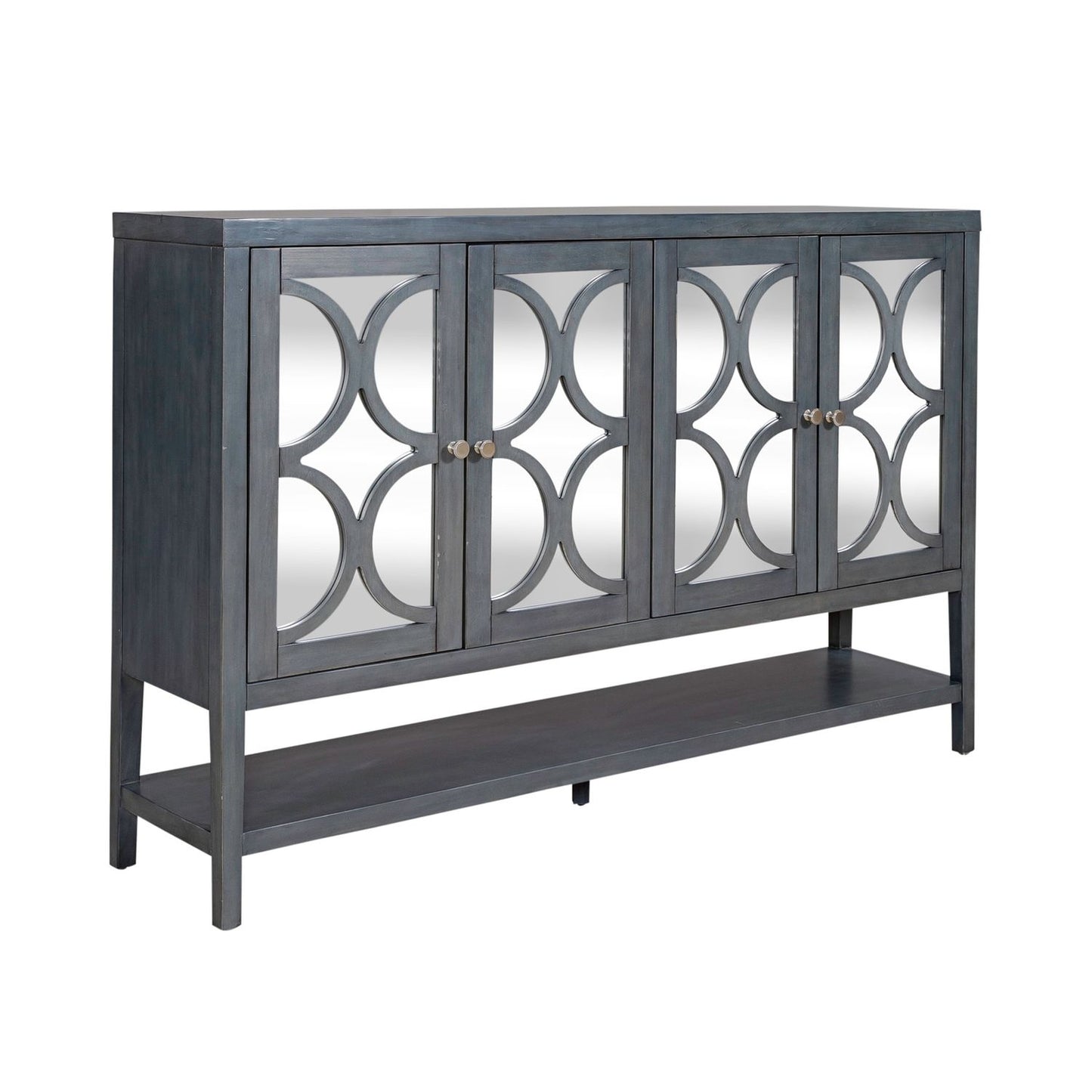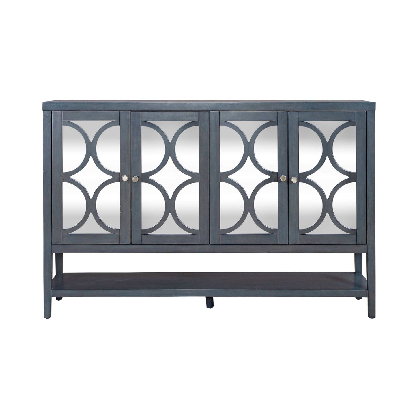 Exquisite design combined with functionalities. The Circle View four door accent cabinet is crafted with excellence using poplar solids and birch veneers and features a Blue Dusk finish.