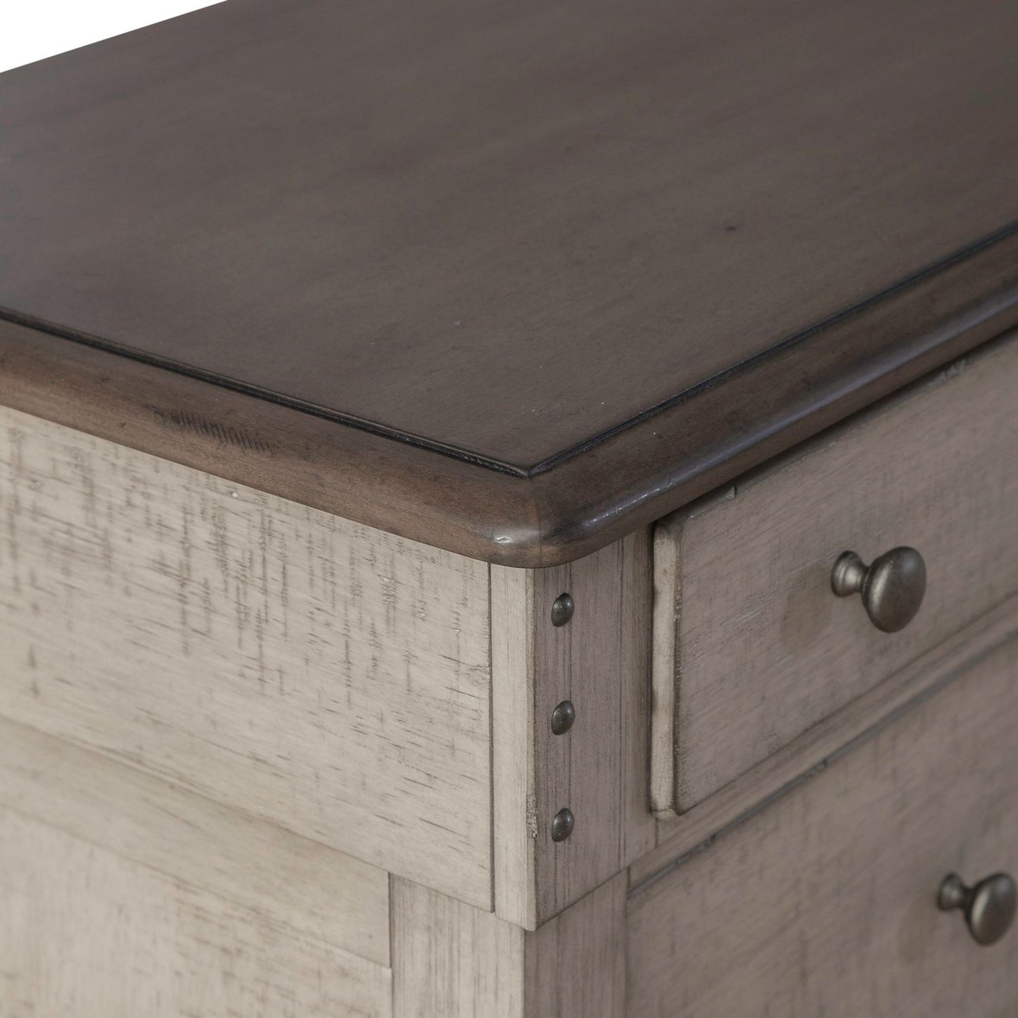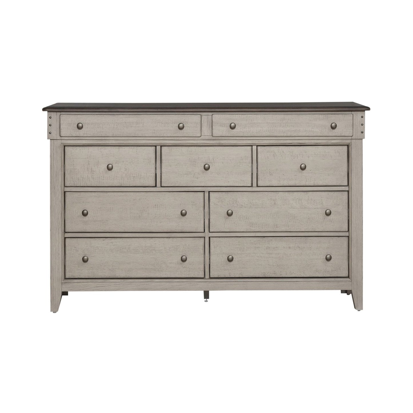 Live life beautifully with the Ivy Hollow dresser. Crafted of poplar solids with pine and alder veneers, this piece features dusty taupe tops with a weathered linen base that is heavily distressed with saw marks.