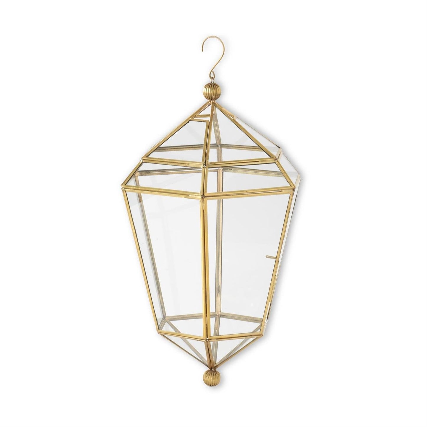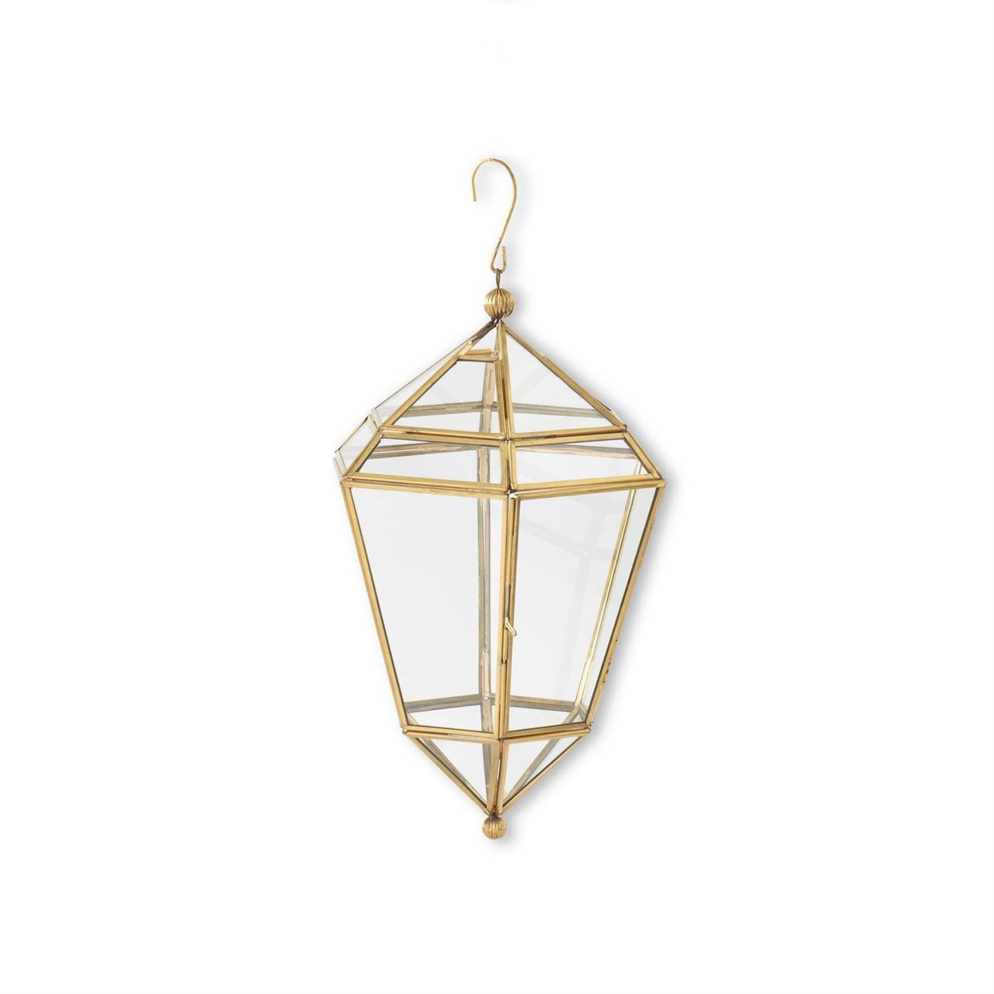 Gold Metal & Glass Hanging Lantern- Large