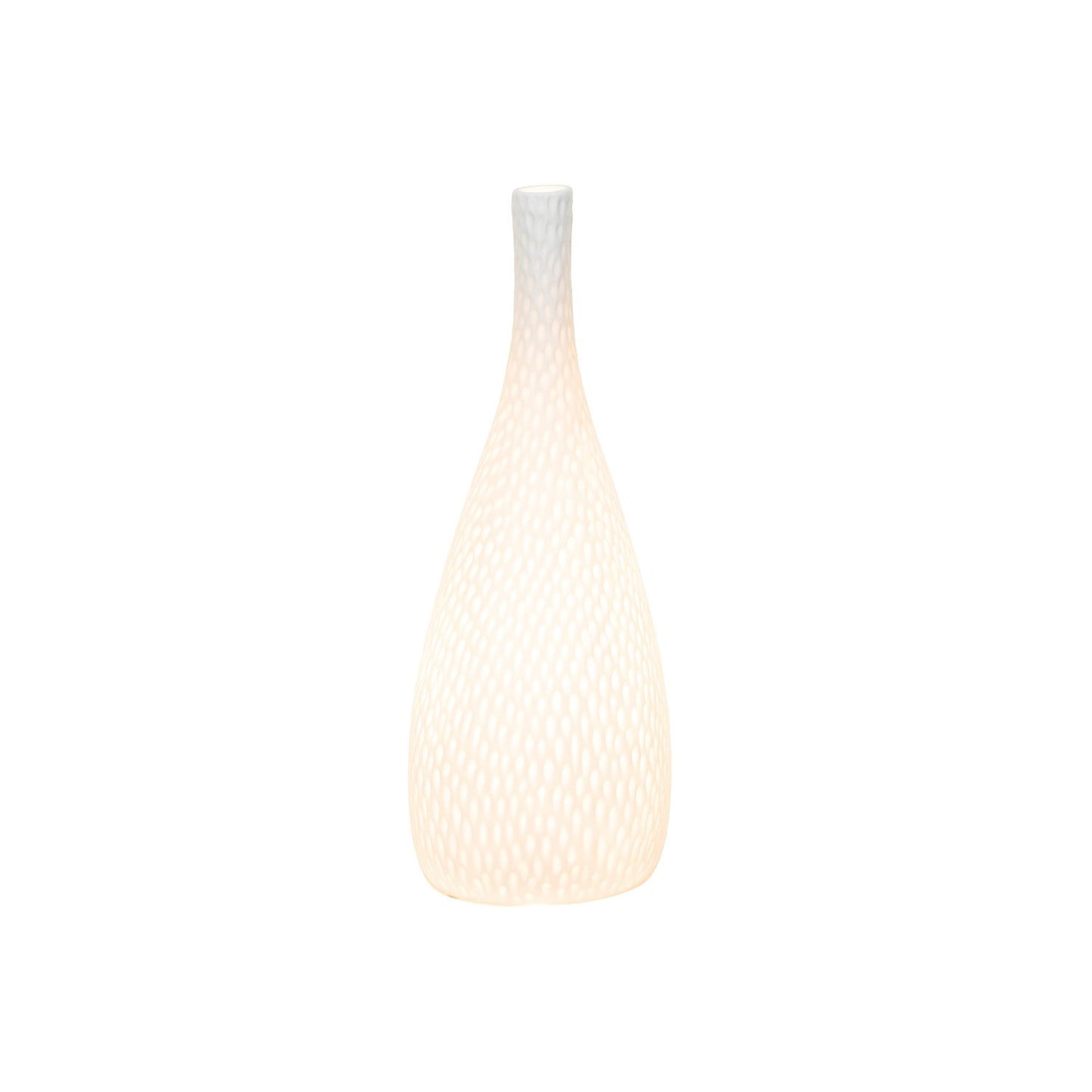 4-3/4"L x 5-1/4"W x 12-1/2"H Debossed Stoneware Bisque Table Lamp w/ Inline Switch, White