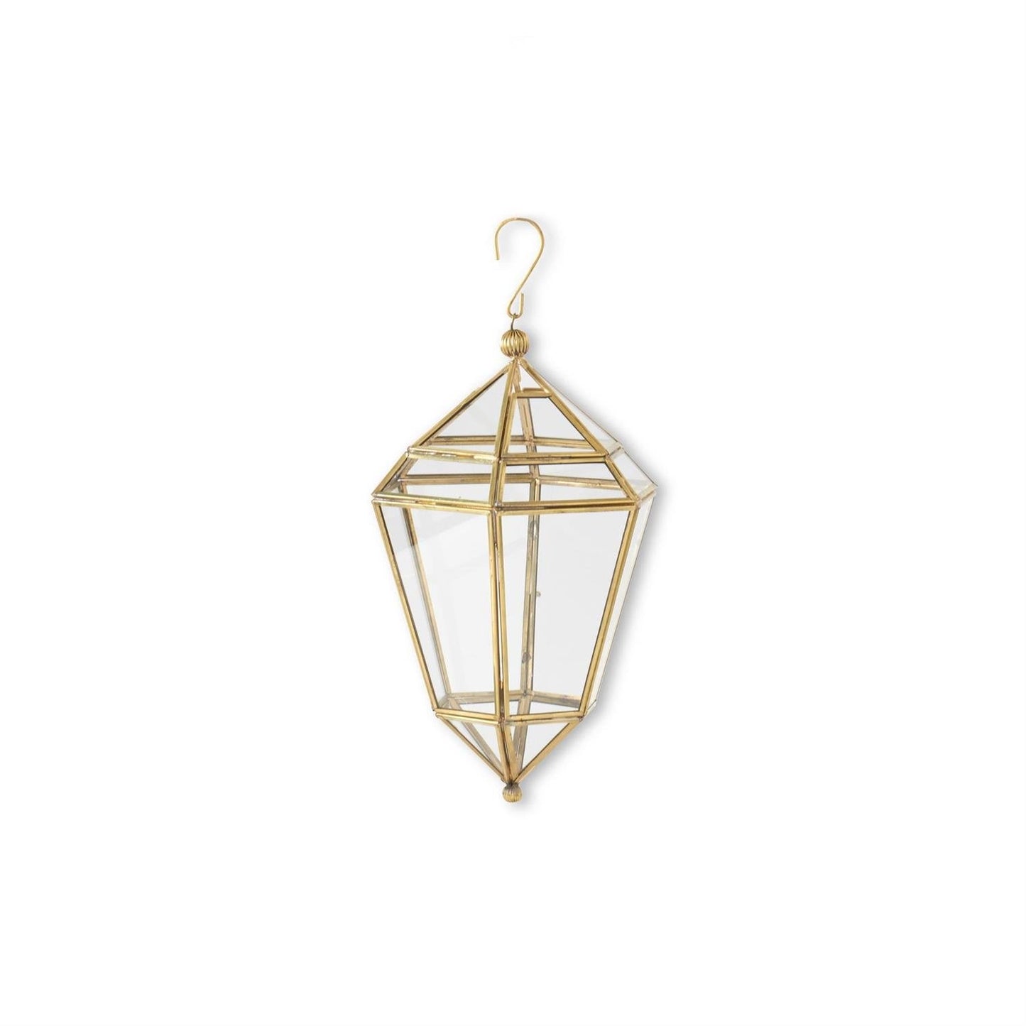 Gold Metal & Glass Hanging Lantern- Small