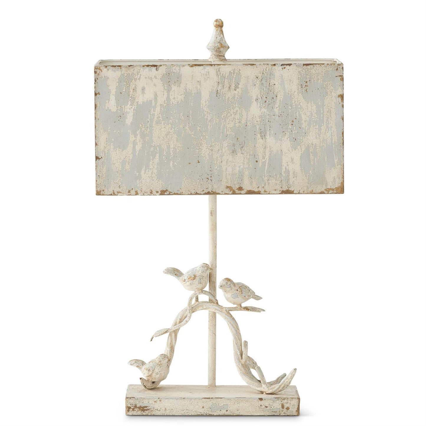 Add Whitewashed Metal Birds Lamp With Light Blue Rectangle Shade to the cart
