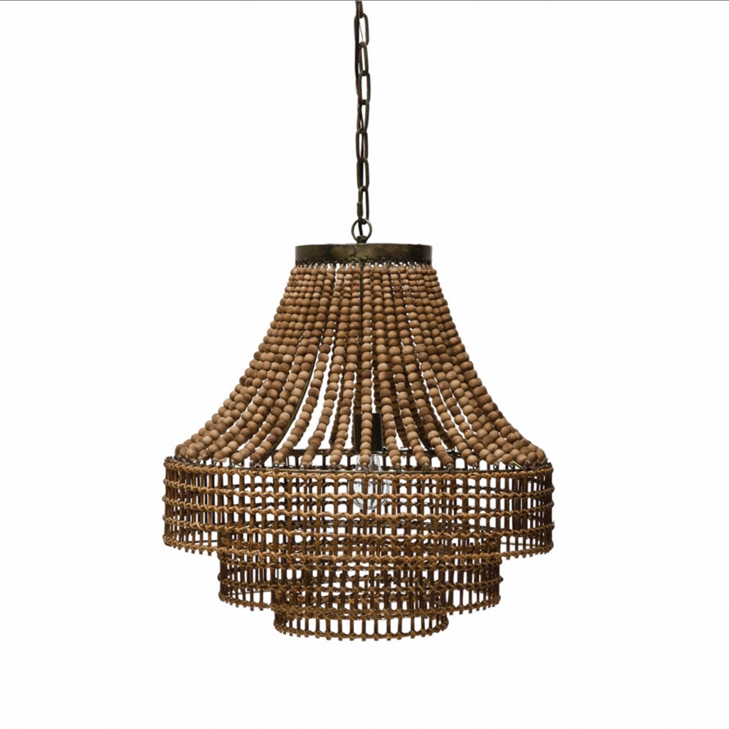 Add Metal, Rattan and Wood Bead Chandelier to the cart