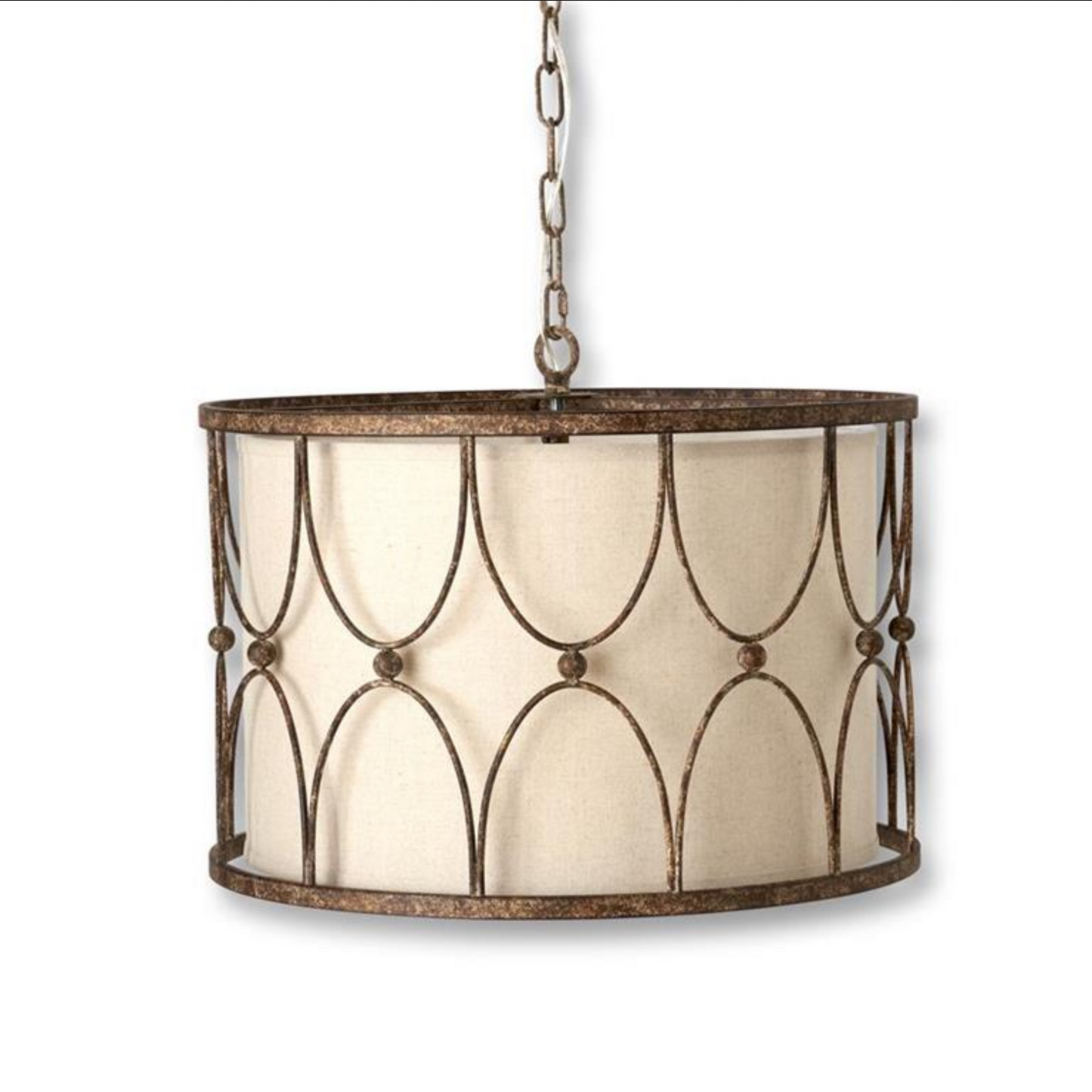 Distressed Metal Drum Chandelier w/Fabric Shade
