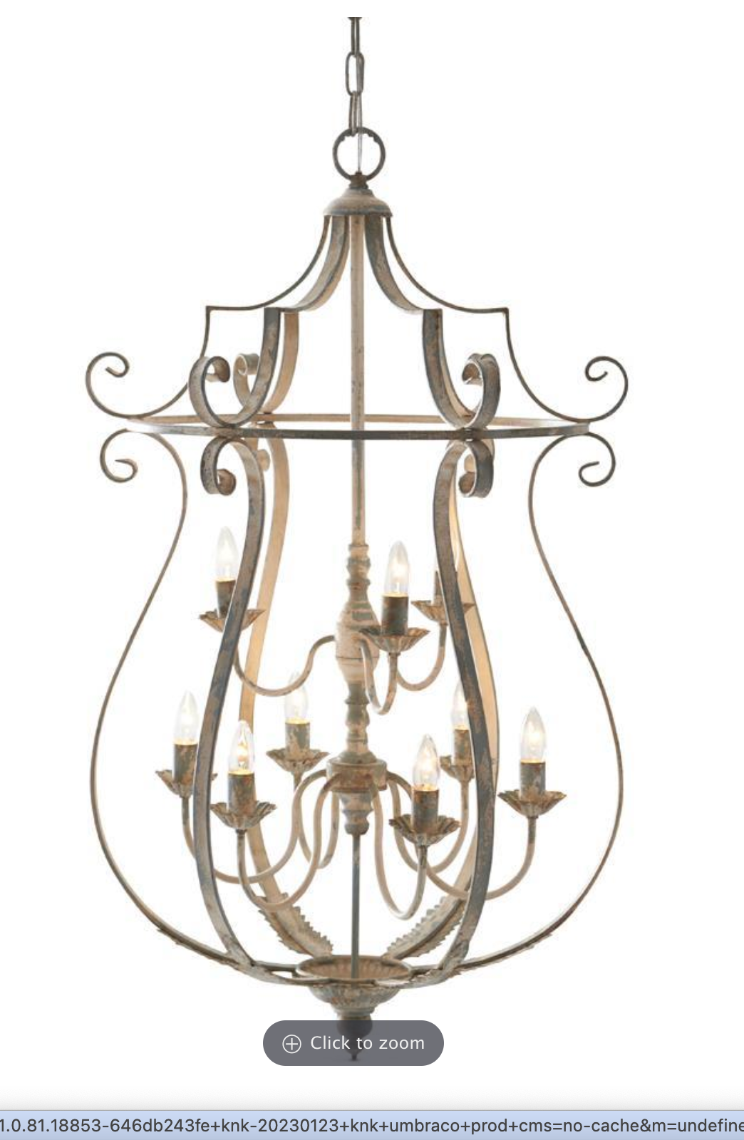 Whitewashed 9 Light Chandelier 42.5"H x 24.5"Dia.