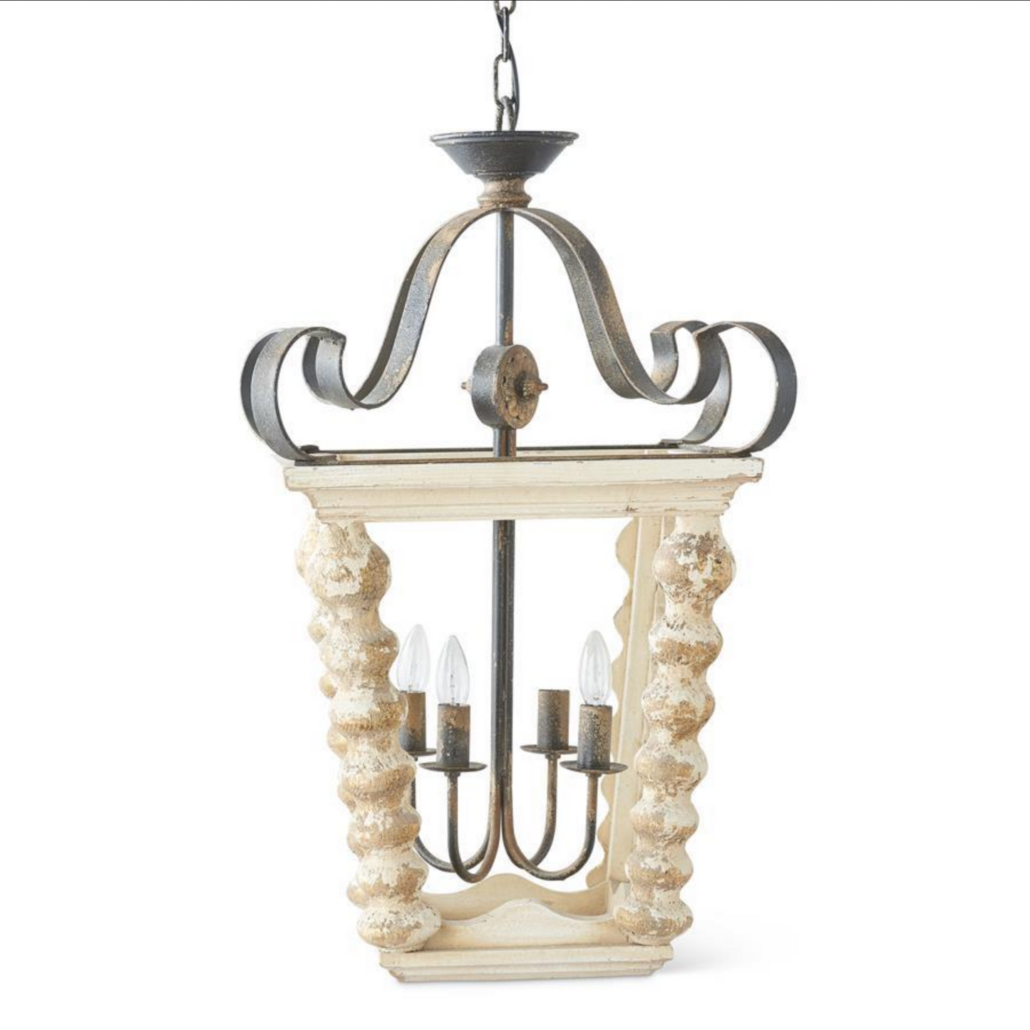 31 Inch White W/Gold Wood & Metal Lantern Chandelier