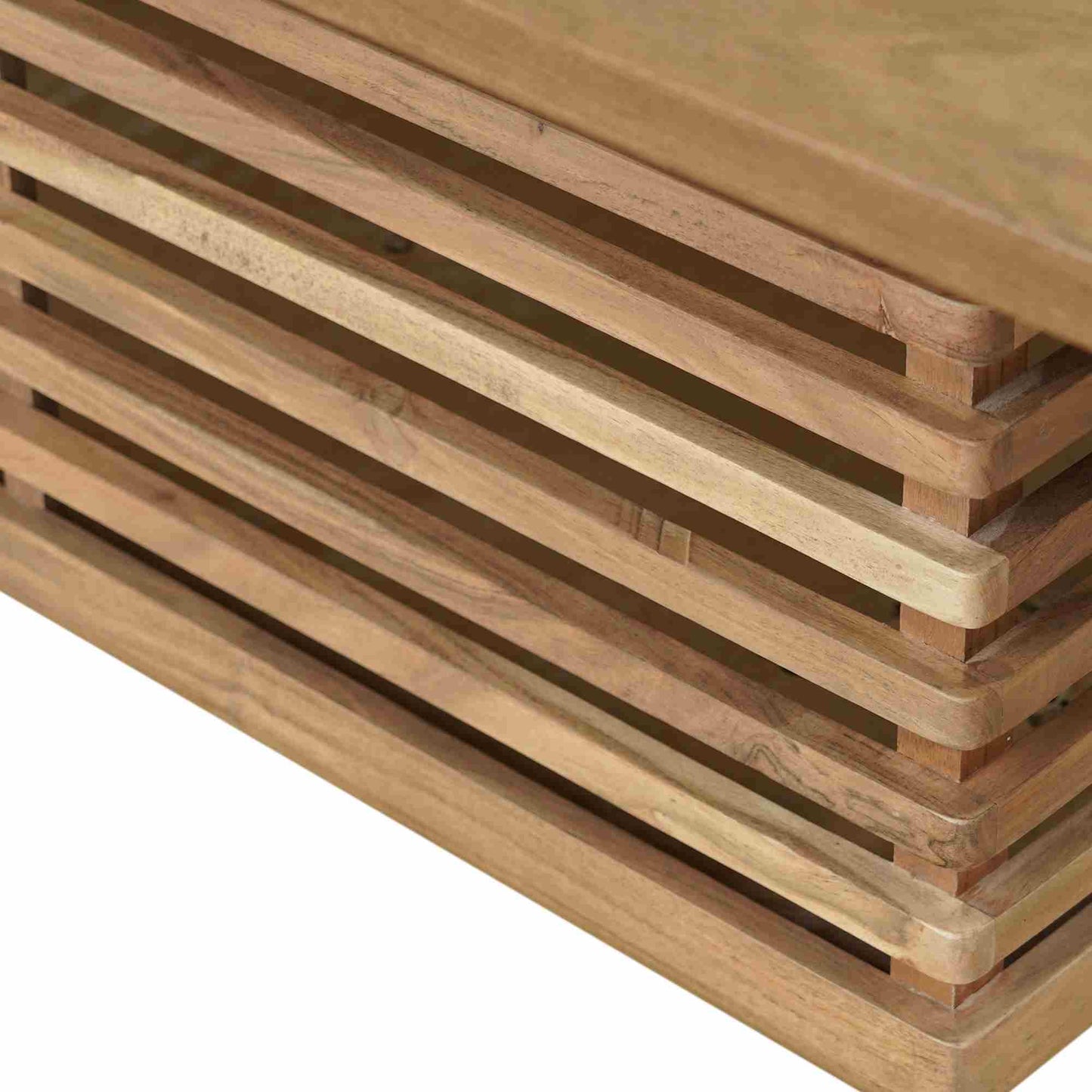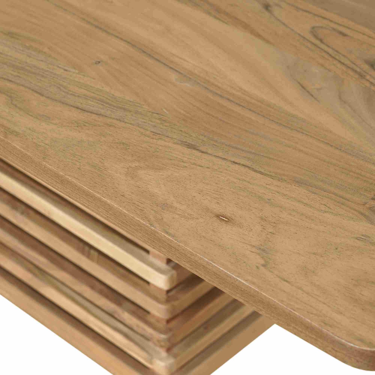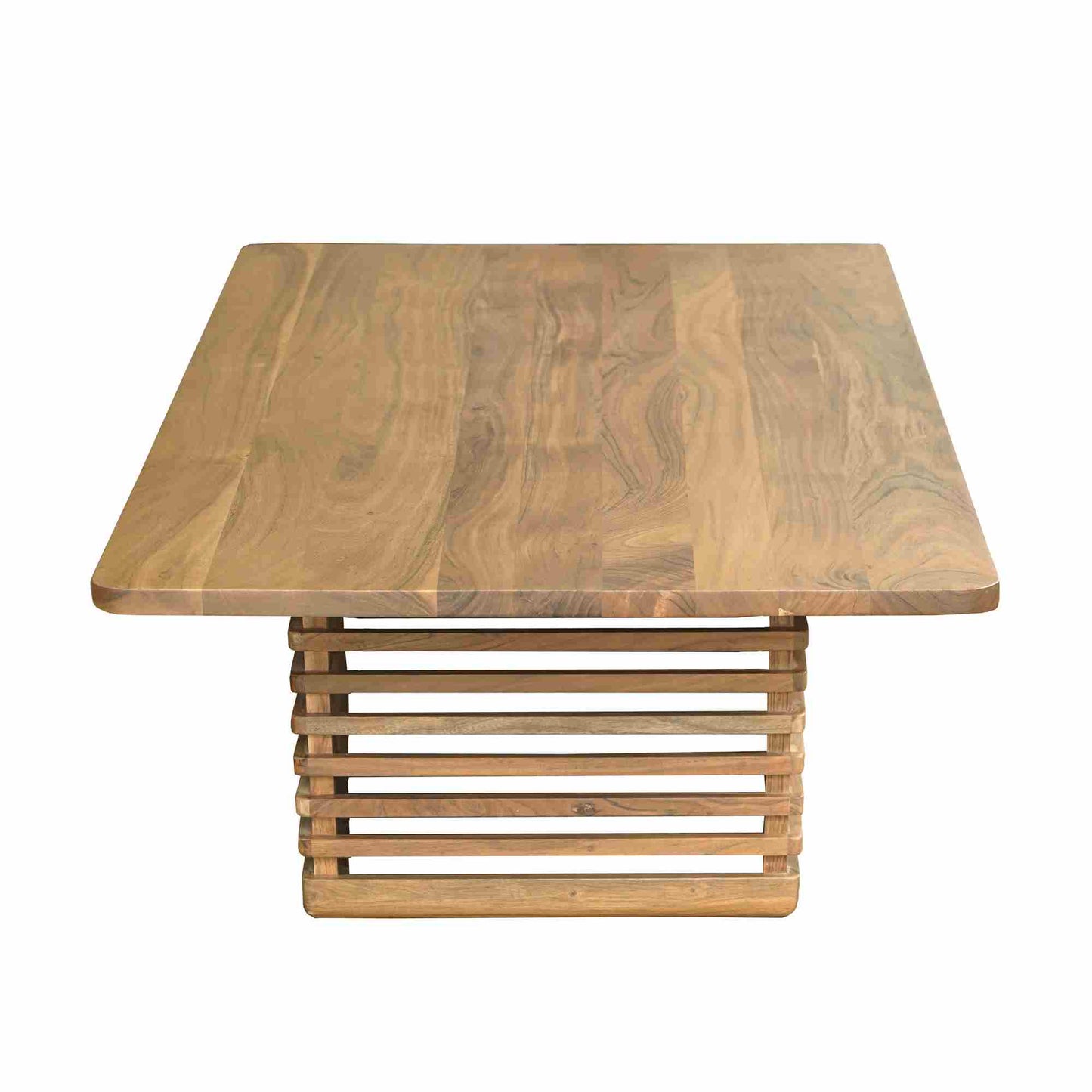 Crafted by hand from 100% acacia wood, this Modern Weaved Coffee Table blends Mission/Craftsman and Scandinavian design influences for a refined, timeless look. Its sturdy construction supports up to 250 pounds, making it both elegant and practical for your living space.