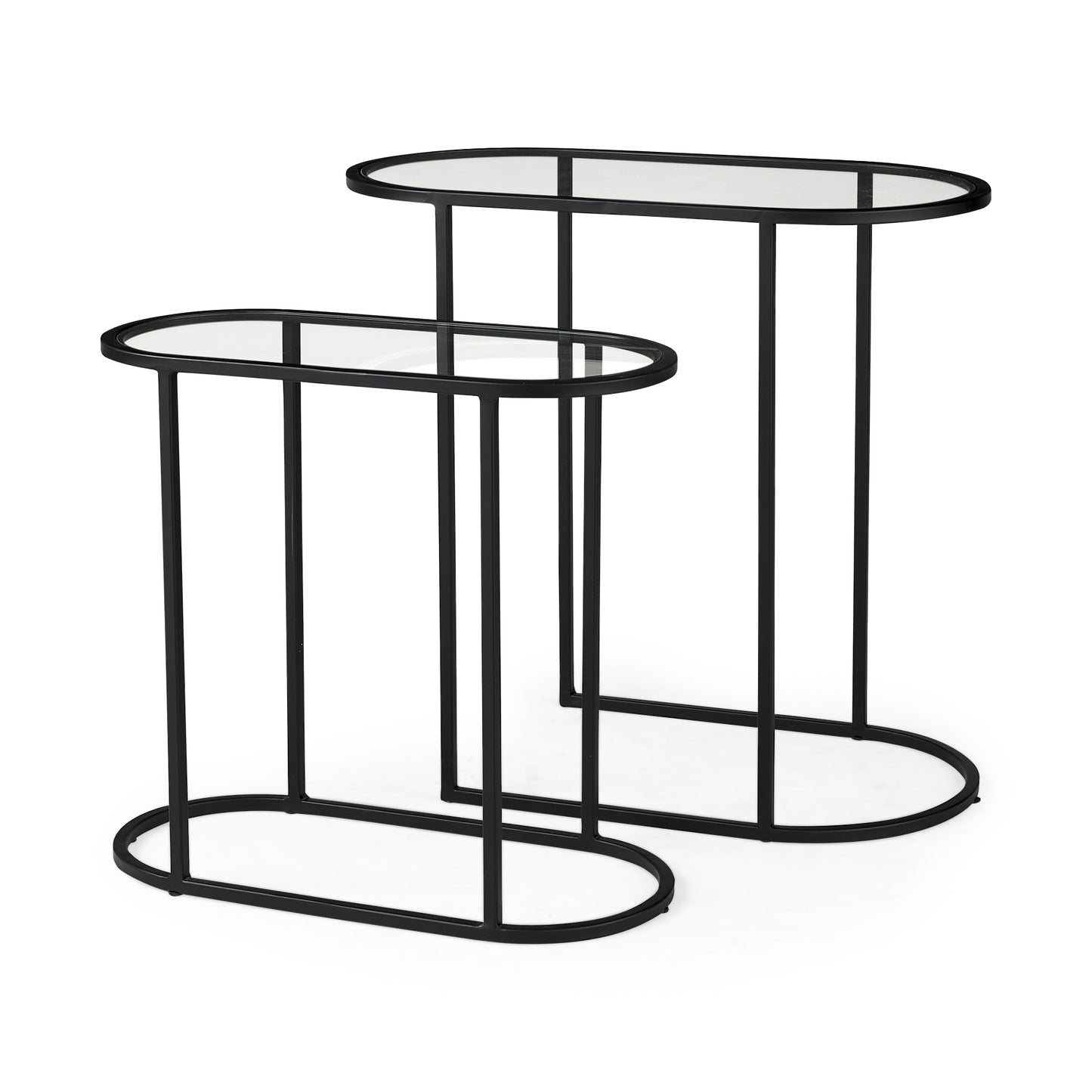 Celine Set of Two Black/Silver Metal and Glass Nesting Accent Tables