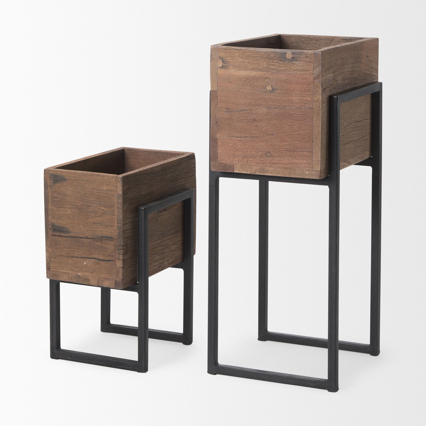 Jadine Set of 2 Medium Brown Wood w/ Black Metal Rectangle Frames