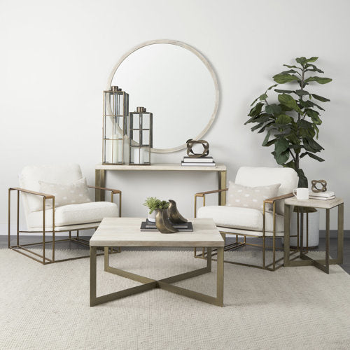 Faye Barely Gray Finished Wood W/Gold Metal Base Square Coffee Table