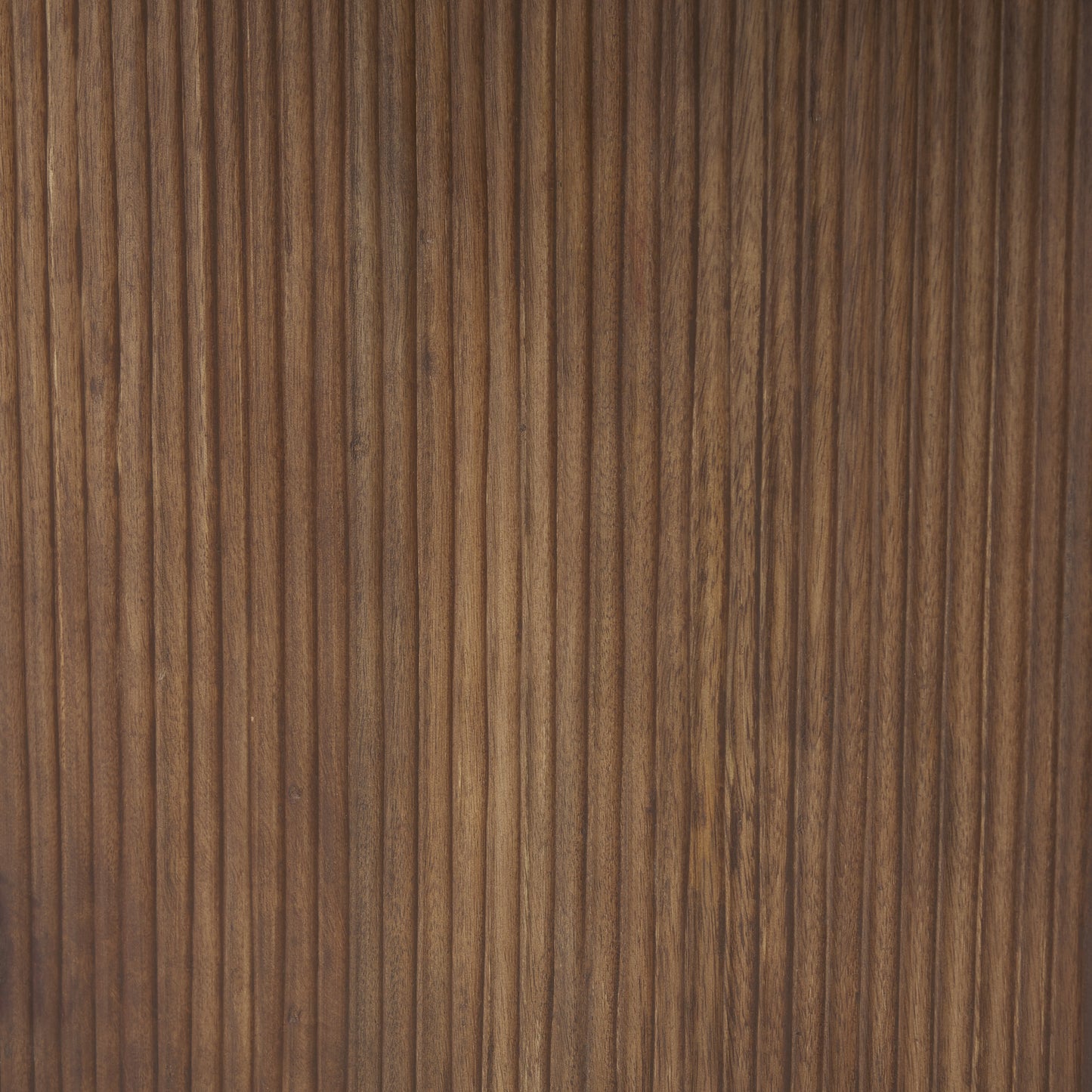 Designed to make a statement, the Enzo features a solid wooden tabletop in a rich, medium brown finish secured on three slim fluted wood legs.