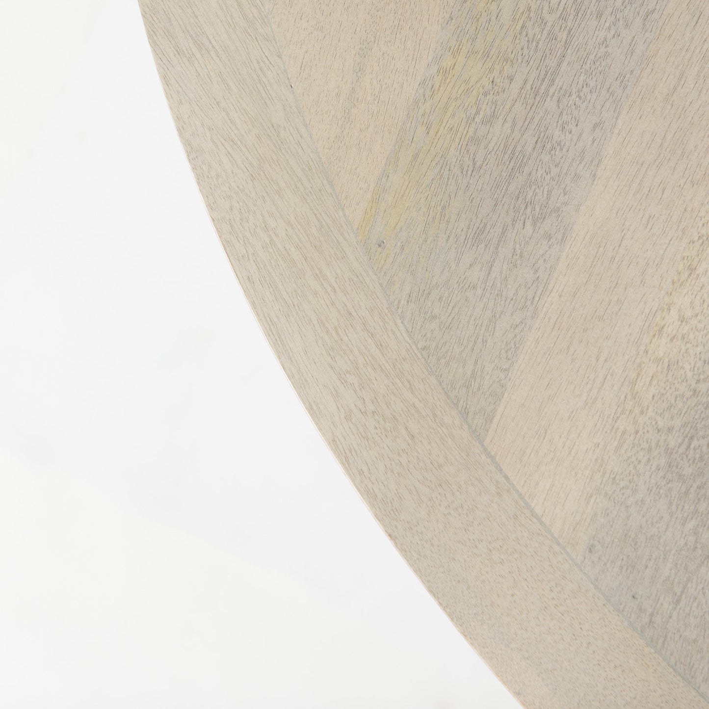 The round solid wood top and geometric pedestal base of the Liesl ensures a sleek silhouette that perfectly aligns with mid-century modern designs.