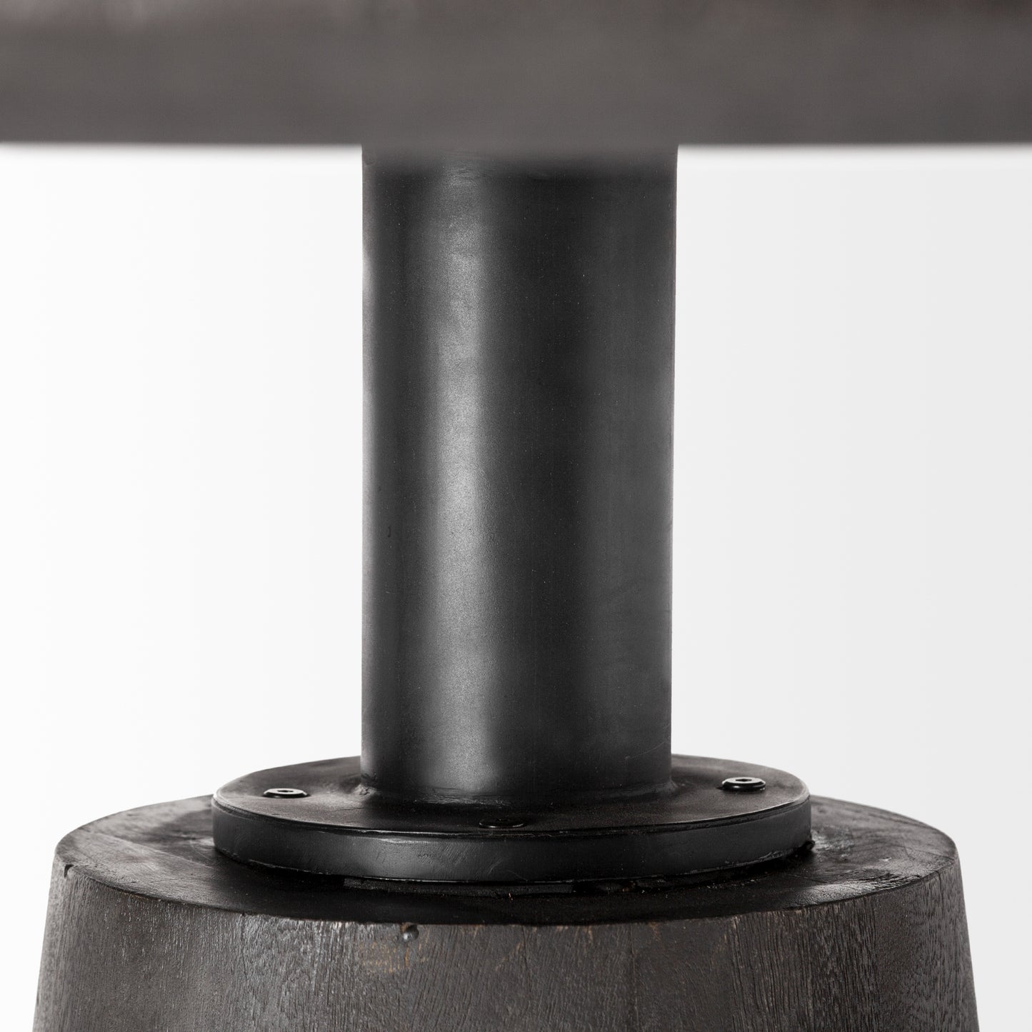 The base is also solid wood with a black iron transition from the base to the top which guarantees stability and solidity. The combination of dark stained wood and iron allows the Maxwell to fit well in spaces designed as per the industrial, modern or woodland design styles.