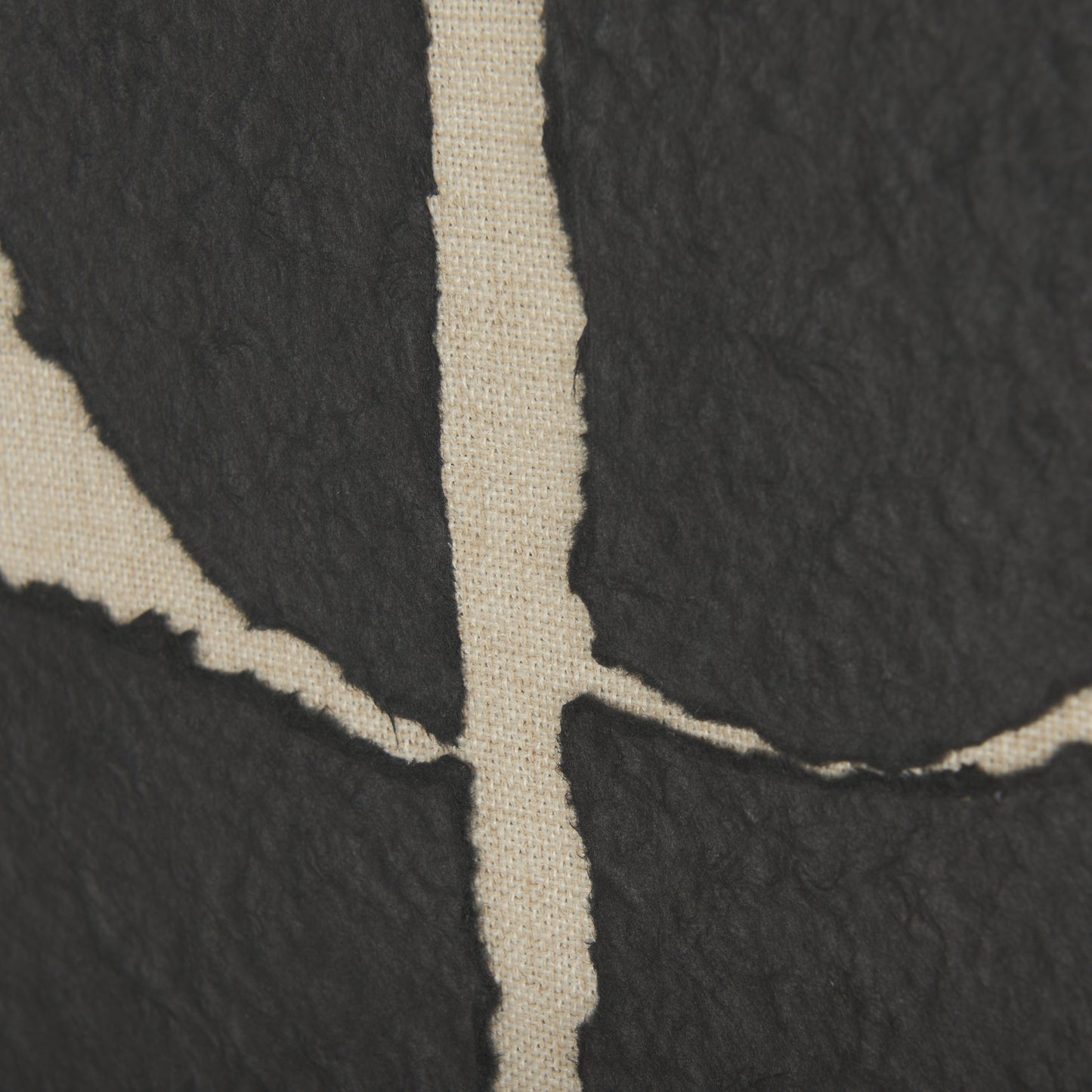 Organic, textured paper in black and a woven backing come together to create various patterns and shapes.