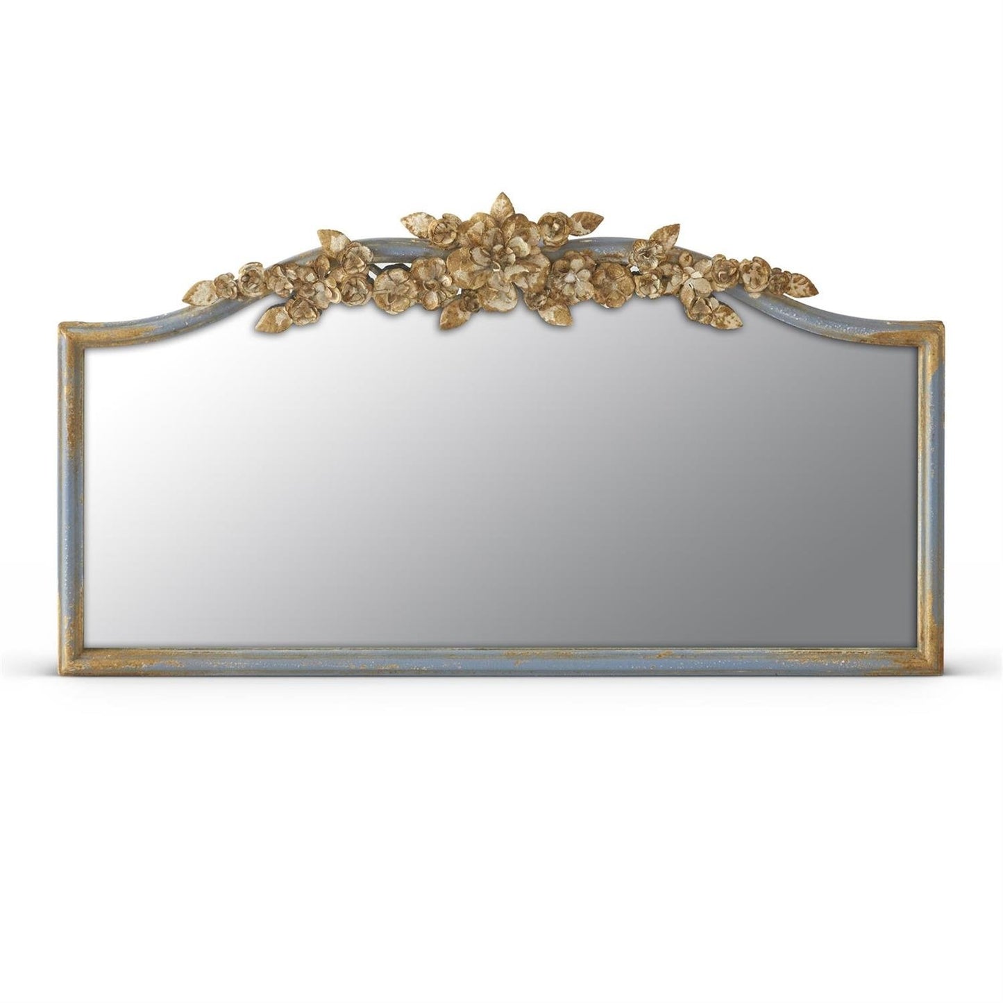 Blue & Gold Distressed Ornate Metal Wall Mirror - 28" x 15"