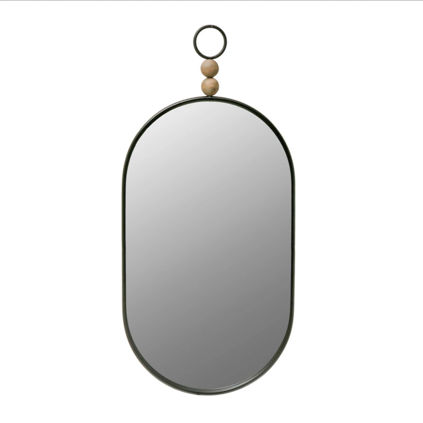 Oval Metal Framed Wall Mirror with Wood Beads, Black