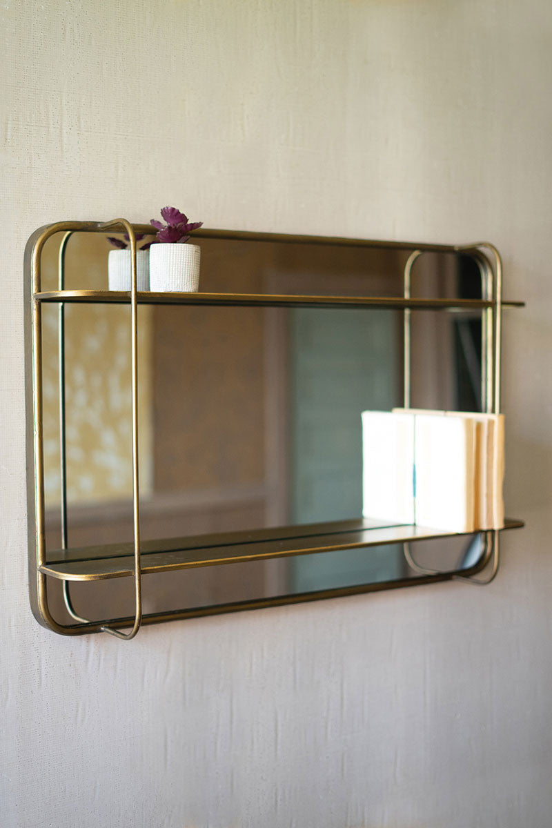 Add 24 Inch Round Black Metal Mirrored Wall Shelf to the cart