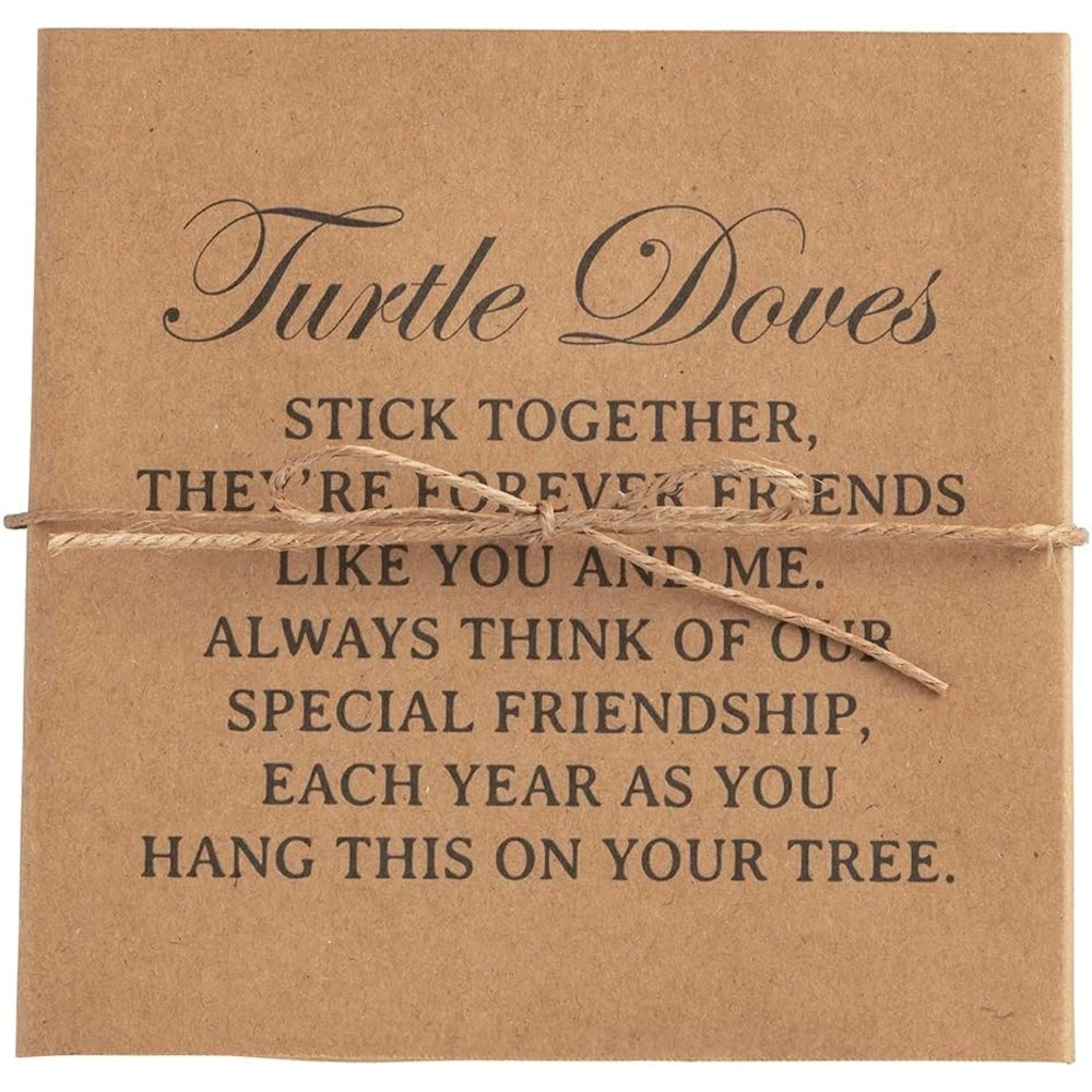 Boxed Turtle Dove Ornament crafted from high-quality milk glazed stoneware, featuring intricate pressed lace detailing that adds a touch of elegance and sophistication. This charming ornament is designed with a luxurious velvet bow hanger, making it easy to display on your tree or as part of your home decor.