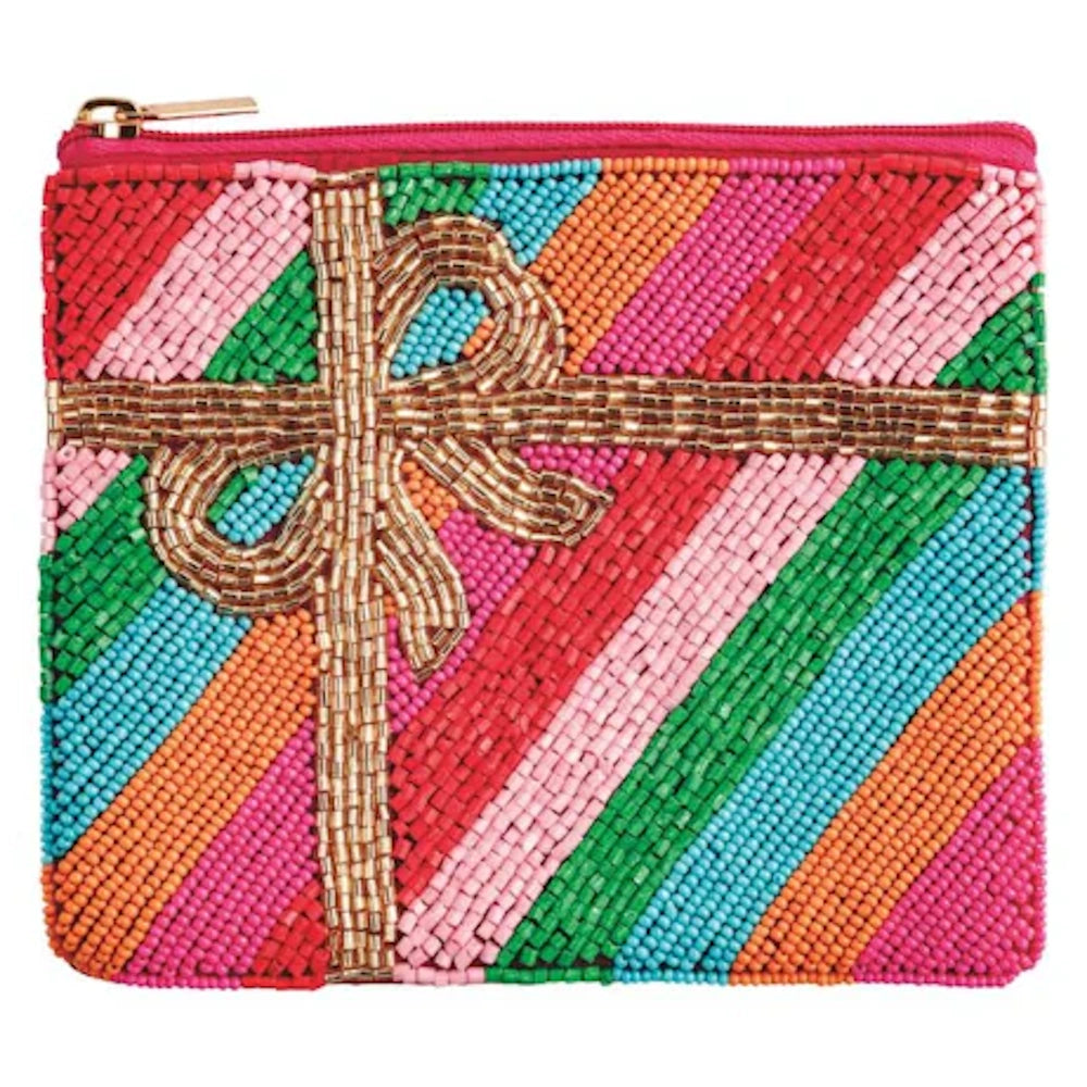Hand-beaded with festive details, this chic accessory is perfect for adding seasonal charm to your everyday style. Whether you’re dressing up for a holiday party or need a festive clutch for your essentials, this pouch blends fashion and function beautifully.