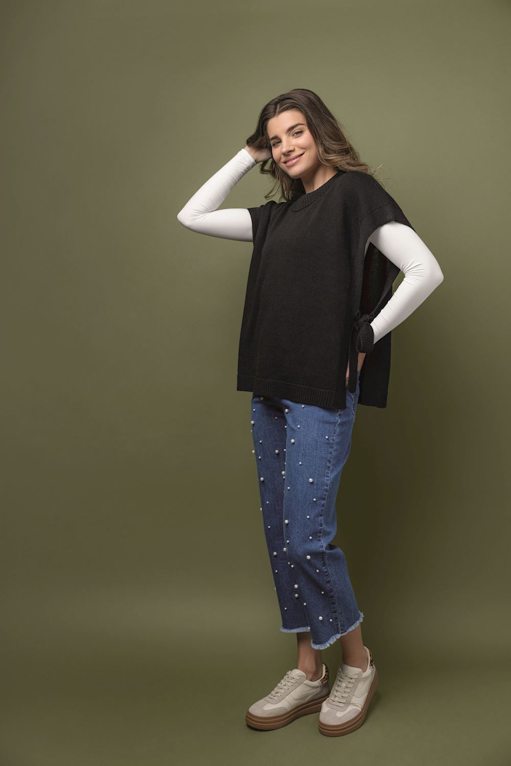 The Tye Sweater Vest is a stylish and versatile addition to any wardrobe, crafted from high-quality acrylic knit for a soft and comfortable feel. This chic sweater vest features open sides, allowing for easy layering over your favorite tops, while the ribbed ties add a touch of elegance and adjustability to the fit. The ribbed hem and trim provide a polished finish, enhancing the overall look. With a length of approximately 25 inches from shoulder to hem, it offers a flattering silhouette that suits various body types. Designed as a one-size-fits-most piece, this vest ensures a comfortable and adaptable fit for different shapes and sizes. Made from 100% polyester, it promises durability and easy care, making it a practical choice for everyday wear. Whether paired with a casual outfit or dressed up for a more formal occasion, the Tye Sweater Vest is a must-have piece that effortlessly combines fashion and function.