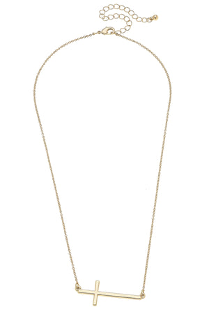 Carmi Horizontal Cross Necklace in Shiny Gold