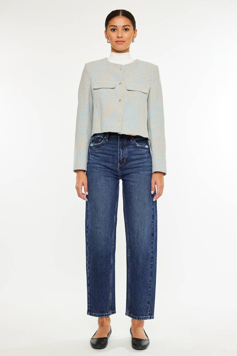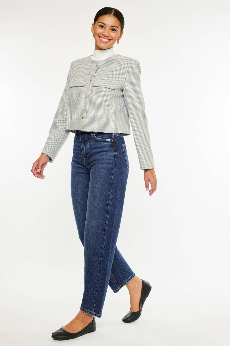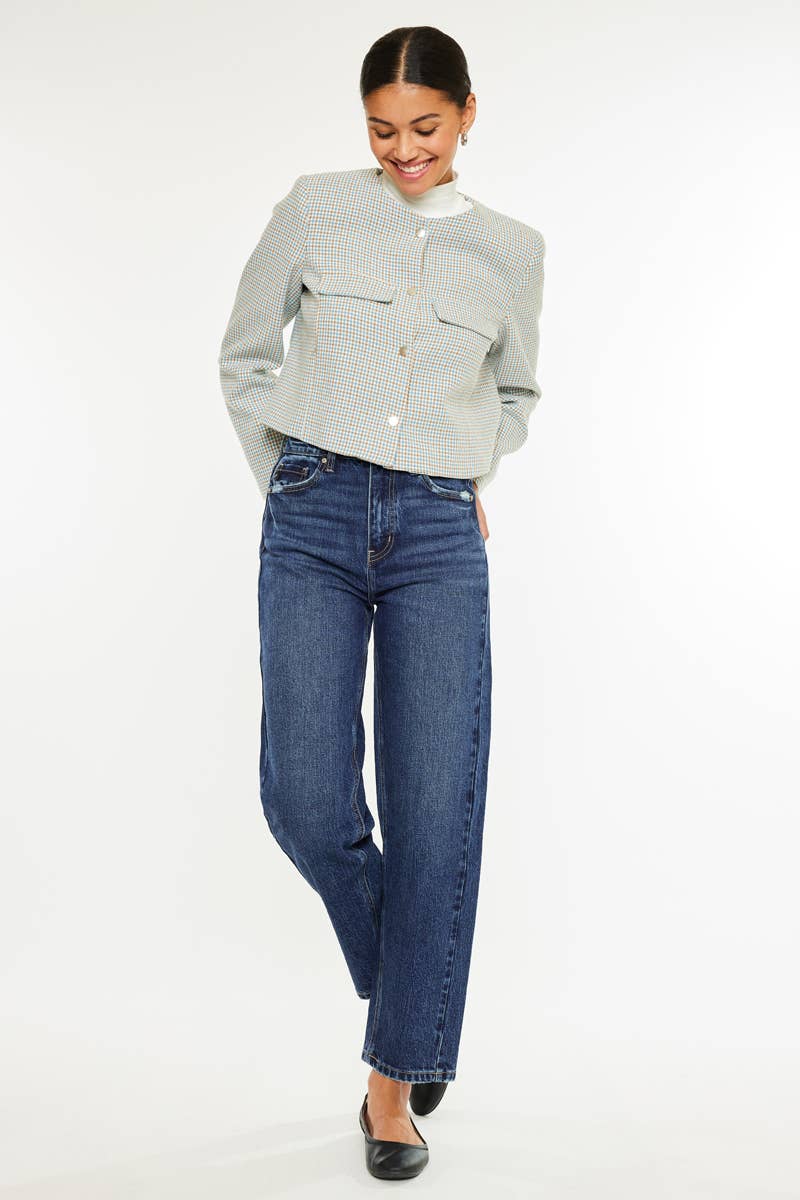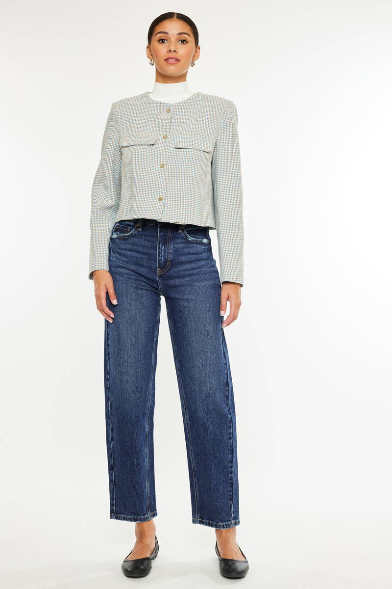 Step into modern comfort with KanCan's High-Rise Balloon Fit Jeans, featuring a trendy 28" inseam and a statement-making 12" front rise. The dark wash adds a touch of sophistication, while the balloon fit gives you a relaxed yet stylish silhouette. Made from a sturdy cotton blend with a hint of spandex, these jeans offer both durability and a touch of stretch. Perfect for casual days out or dressing up with your favorite heels, these jeans combine classic style with contemporary flair.