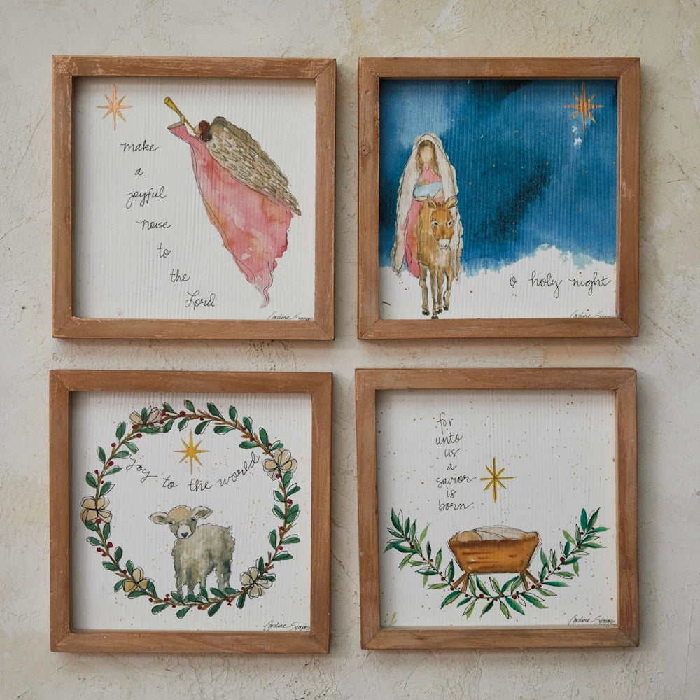 This wood-framed wall decor holiday set is a beautiful and inspirational way to decorate the home. The wall decor features a religious scene and a meaningful saying that expresses faith and love and comes in four different styles that suit any taste and mood.