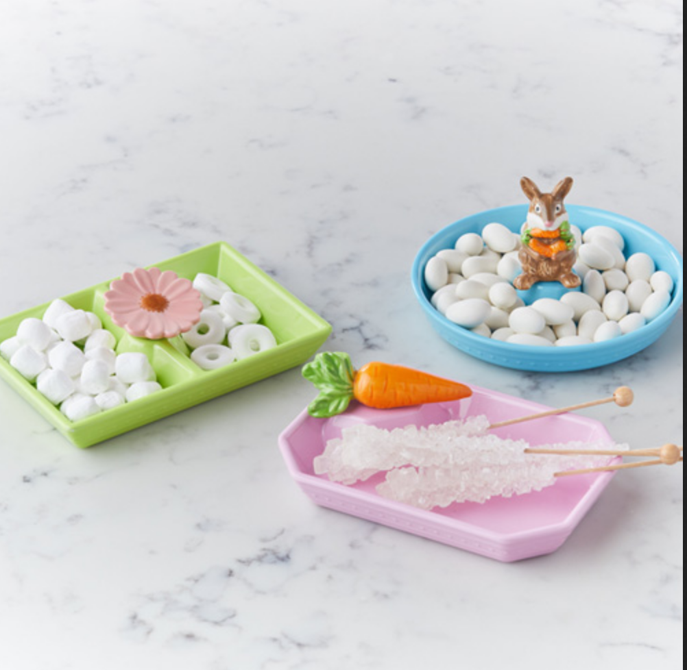 Set of three dainty dish set, with beautiful spring colors.