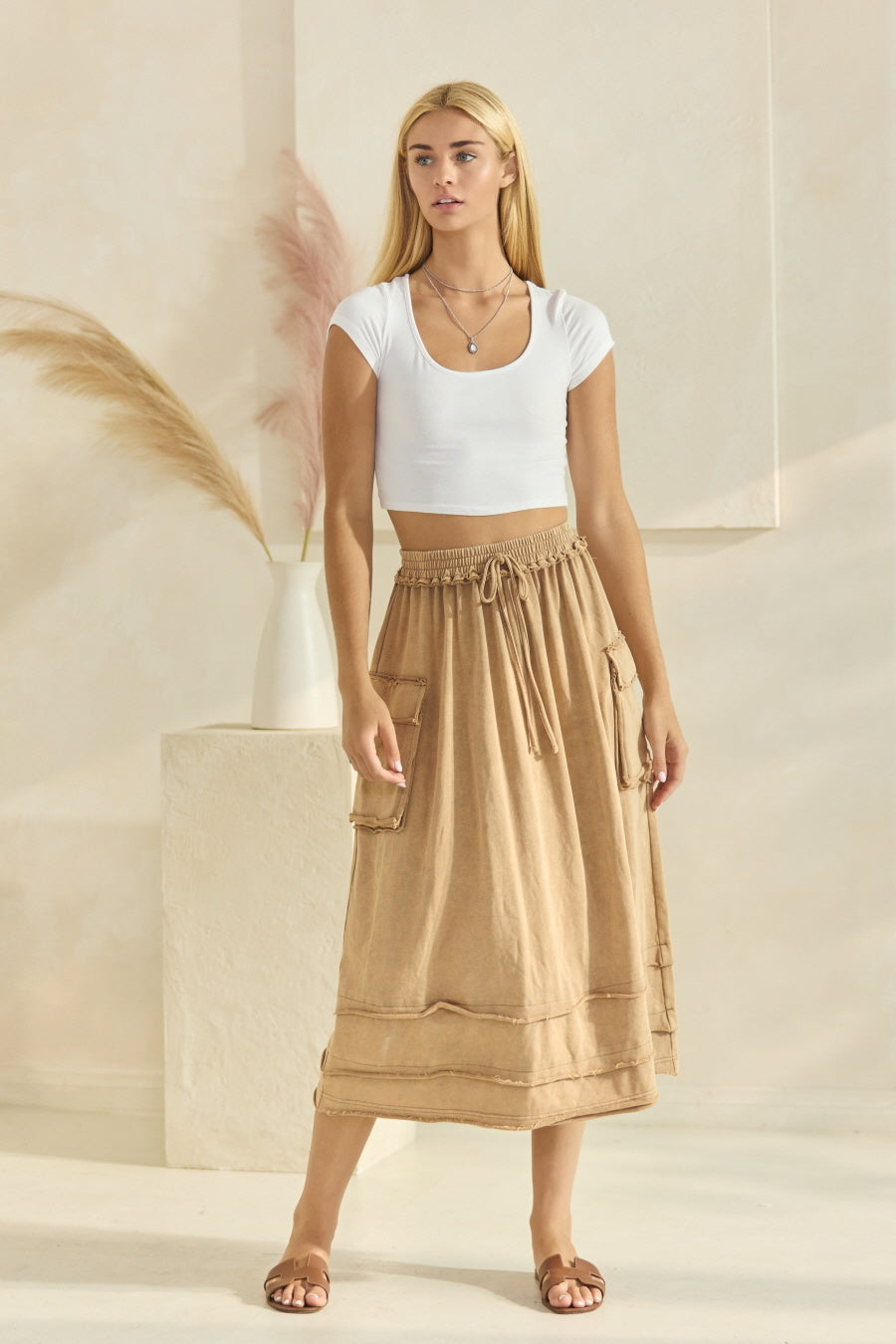 Acid Washed French Terry Skirt Washed Taupe