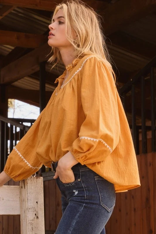 Embroidery Ruffle Neckline Blouse