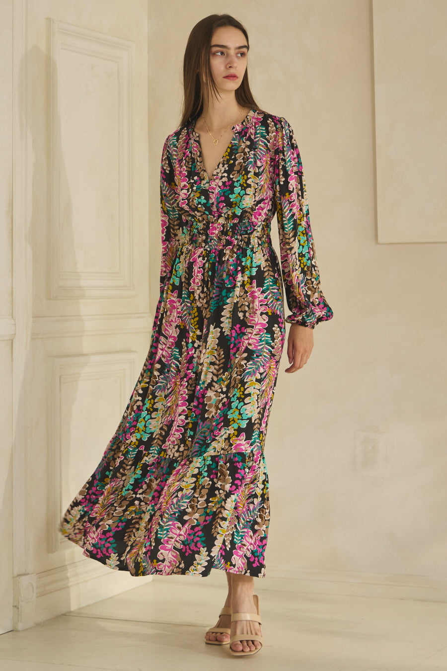 Colorful Floral Print Long Sleeve Maxi Dress