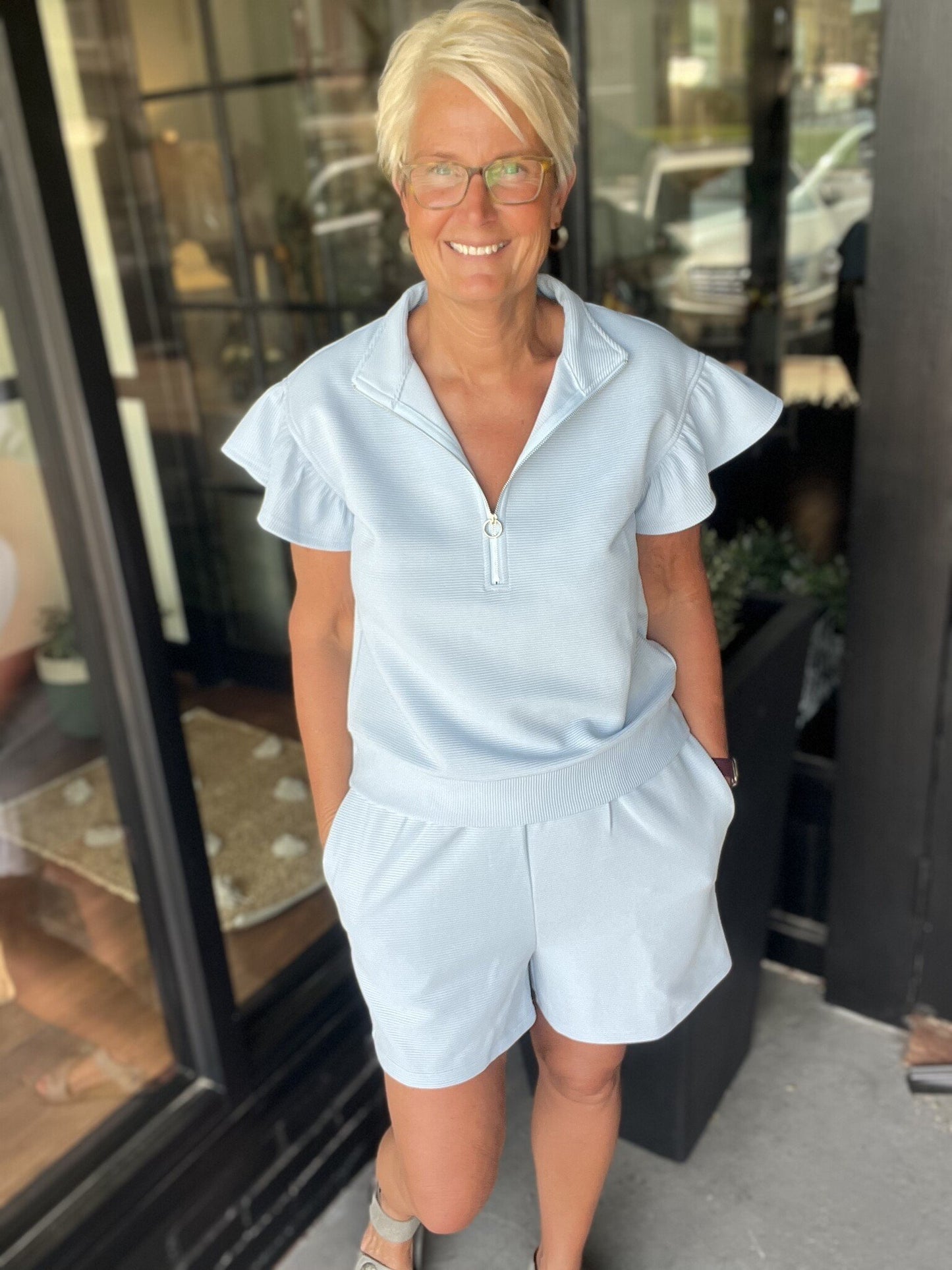 Ribbed Jacquard Track Suit Set with Shorts
