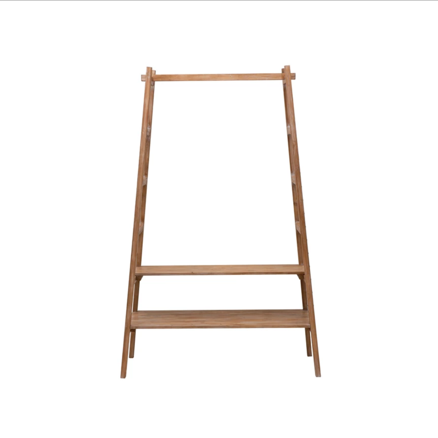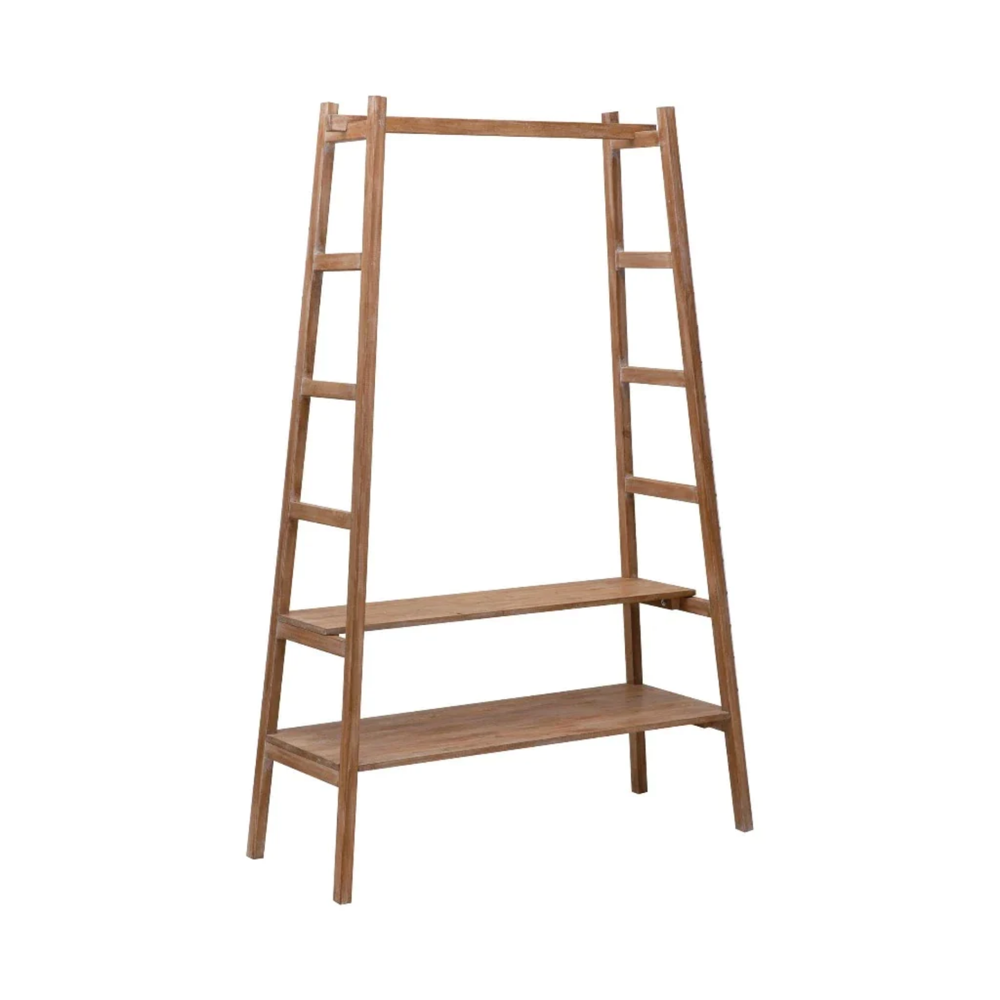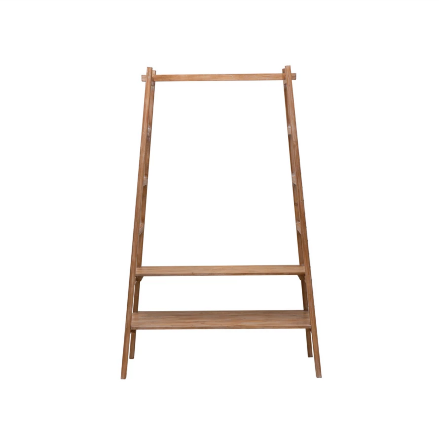 This wooden shelf is a statement piece for any office or living area. Made out of wood and featuring a natural color, this huge wood shelf is able to hang clothes, plants, or other decorative items.
