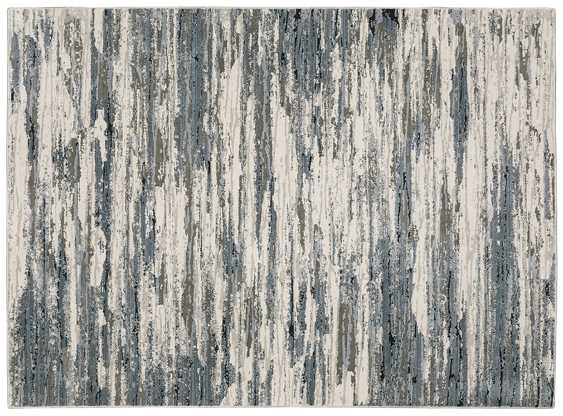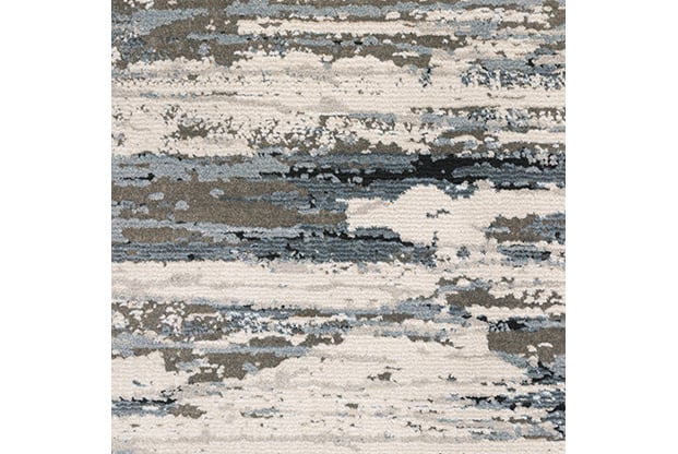An uplifting ivory base sets a versatile stage where steel blues and neutral greys sweep across the surface. Textural pile brings depth to every detail.