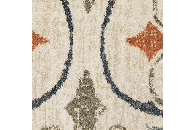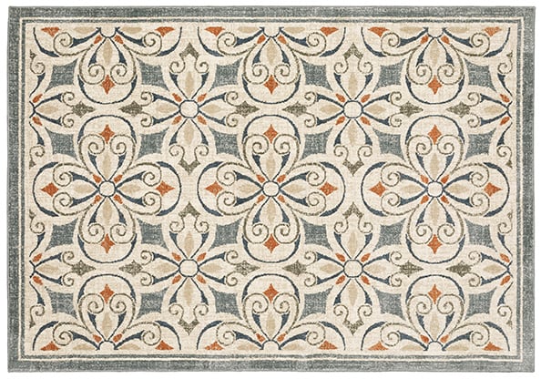 It features shades of soft slate, deep marine blue, terracotta and warm neutrals in designs ranging from organic abstracts to tile-work as well as traditional medallion pieces.