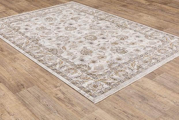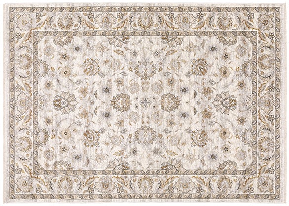 Timeless neutral tones alongside mellow shades of bluestone and muted amber offer subtle treatments for intricately detailed patterns. These beautiful rugs are powerloomed of incredibly soft, space-dyed polyester.