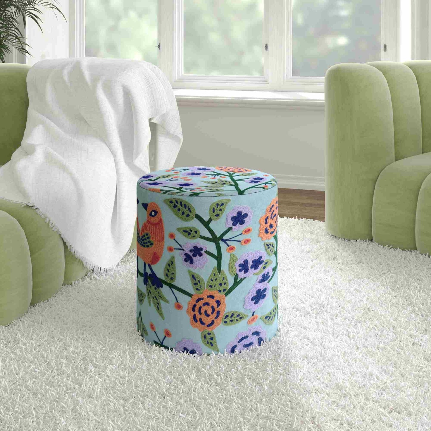 Embroidered Round Ottoman