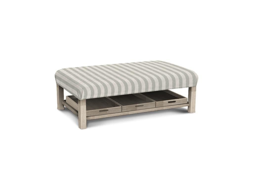 You'll love this generously scaled cocktail ottoman for it's looks, but you'll really enjoy its functional side too. A part of the Paula Deen Home collection, it features a plush top and handsome transitional lines. But hidden underneath is the real prize- a trio of matching trays - perfect for snacks, beverages, or even a game. Use them anytime or all the time! Available in any finish, any fabric!