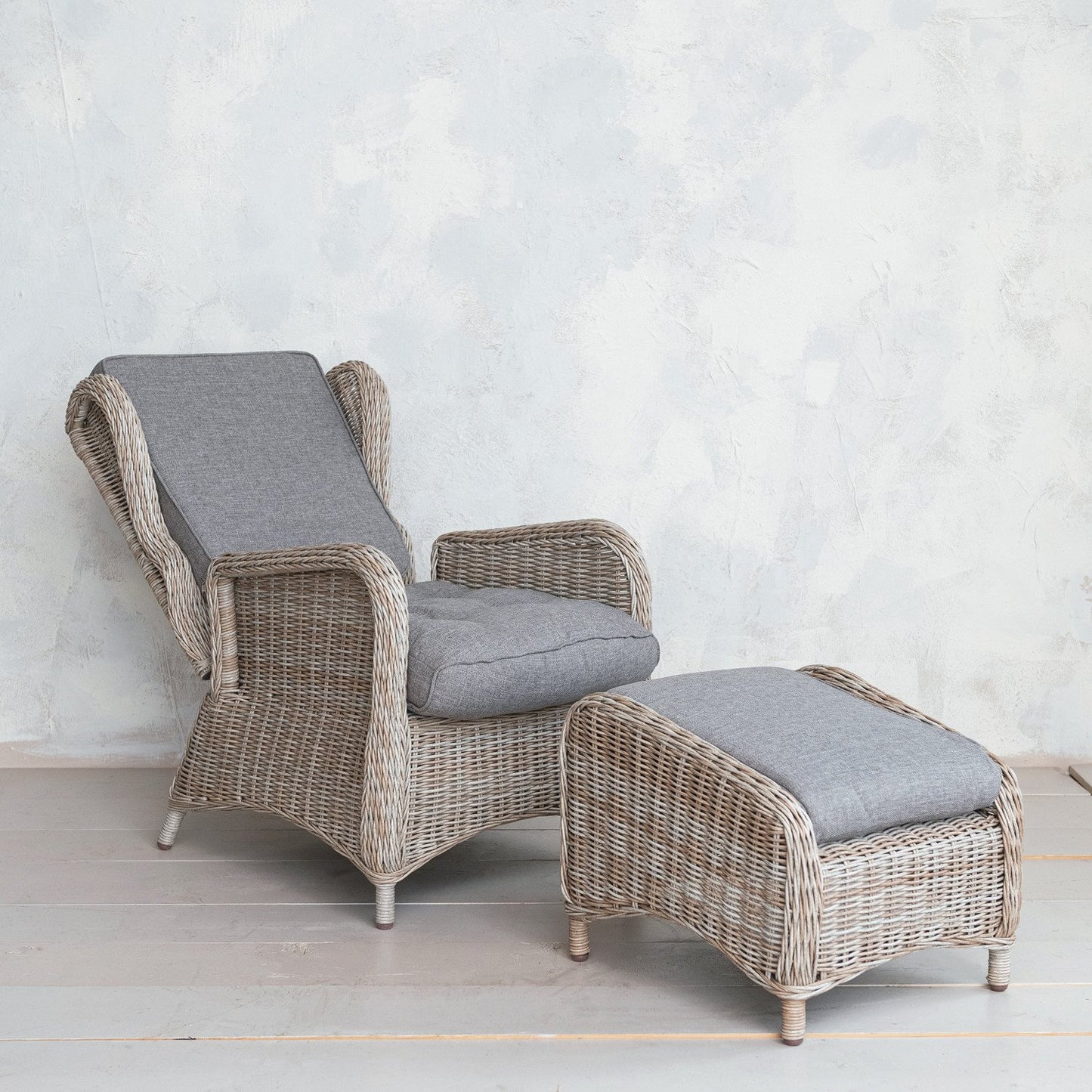 Hand-Woven Wicker Reclining Indoor/Outdoor Chair With Ottoman