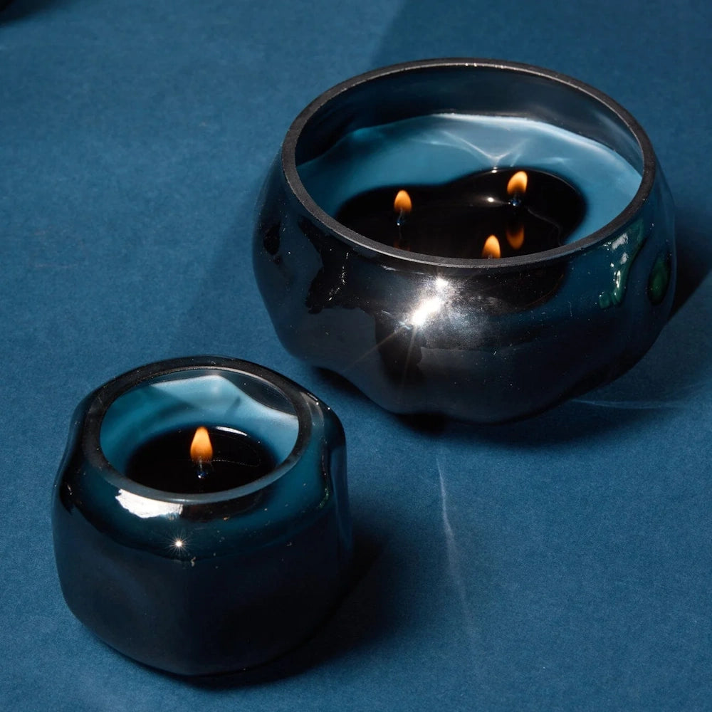Basalt Navy Tinted Glass Candle - Rosewater Santal