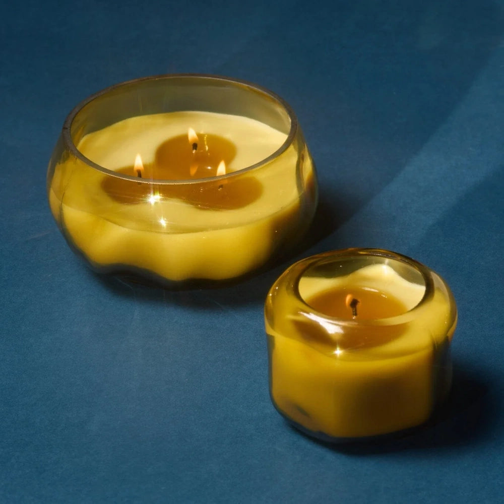 Basalt Yellow Tinted Glass Candle - Tobacco Patchouli
