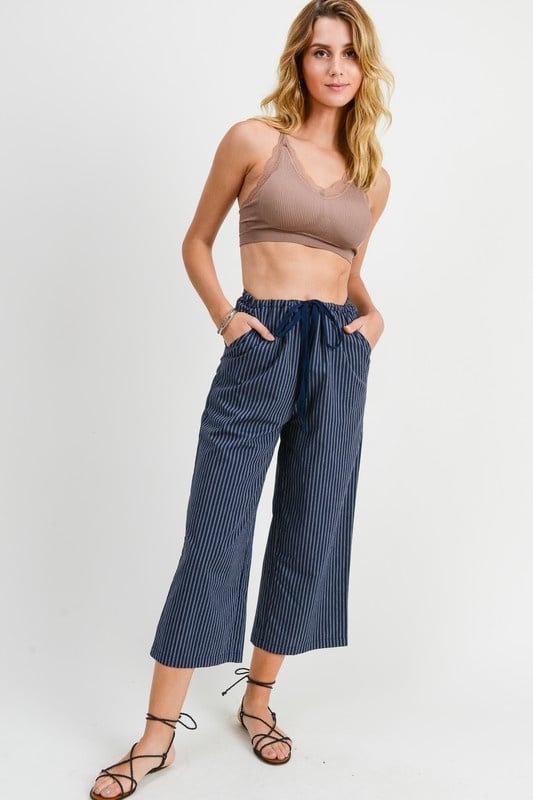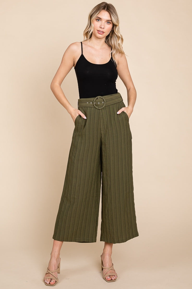 Add Belted Stripe Crop Wide Leg Pants to the cart